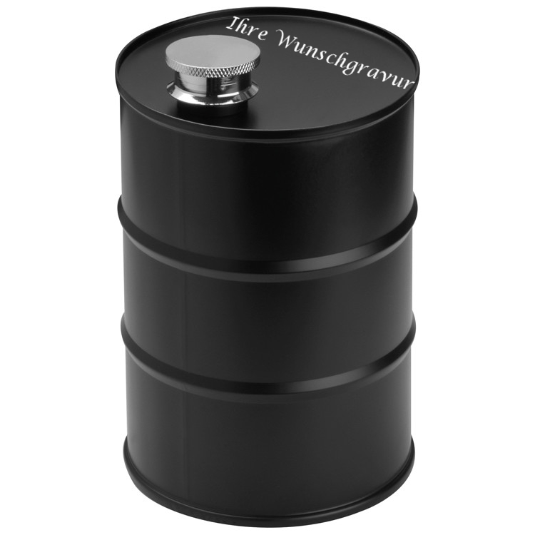 Flachmann "Fass" mit Gravur / aus Edelstahl / 600 ml