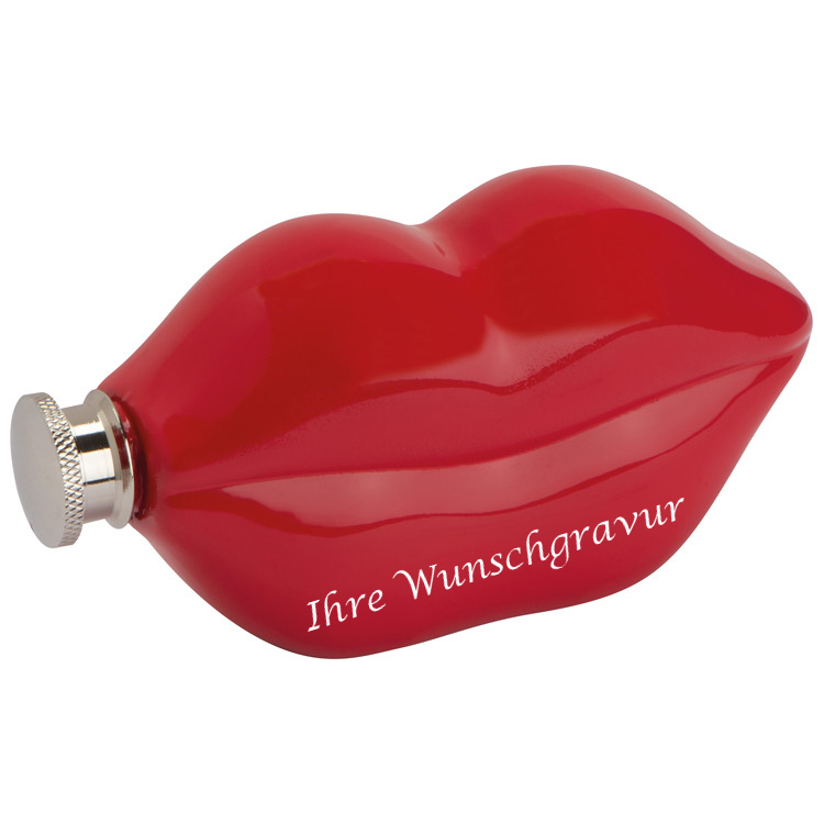 Produktinformationen "Flachmann "Kußmund" mit Gravur / aus Edelstahl / 178 ml"