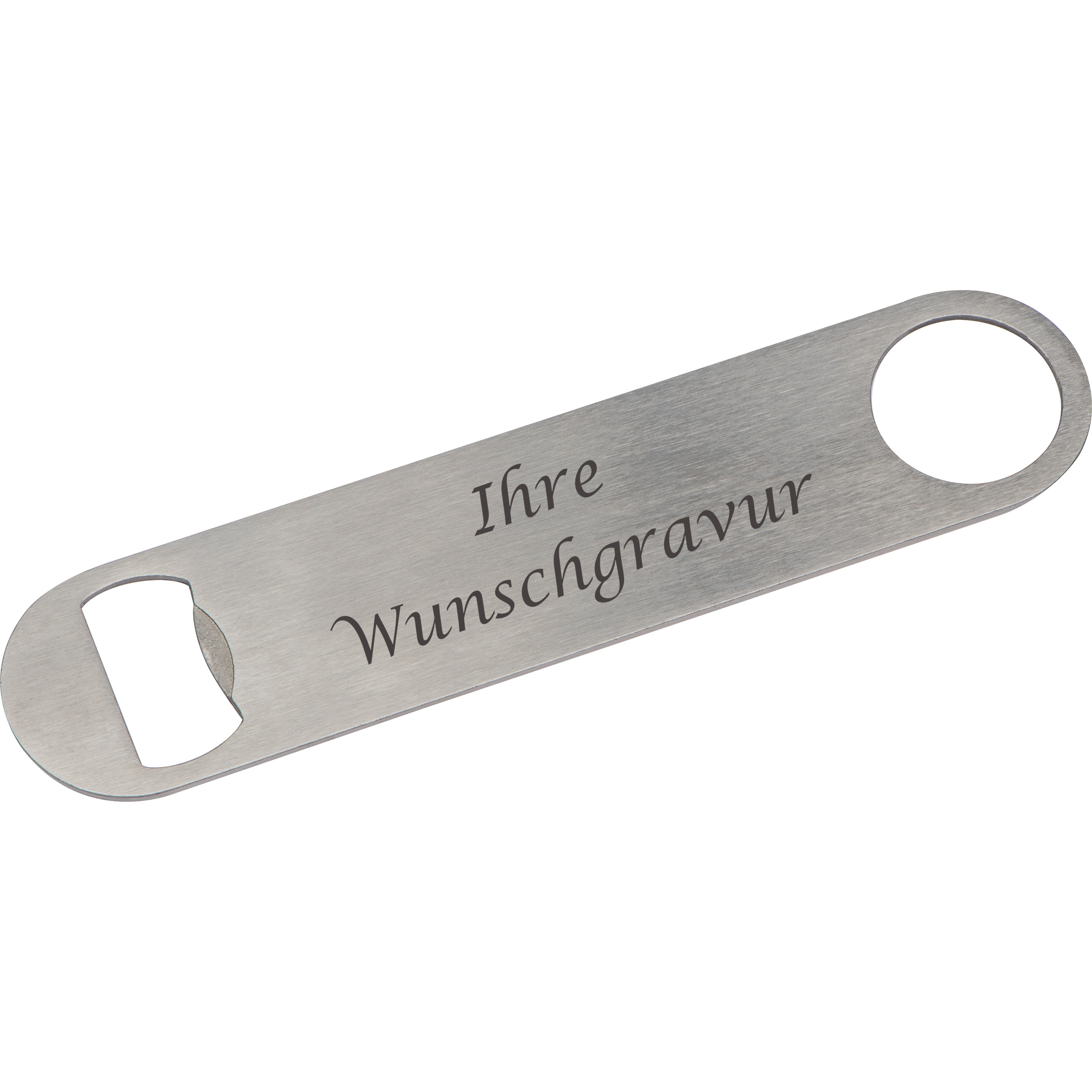 Flaschenöffner aus Edelstahl mit Gravur / Farbe: silbergrau