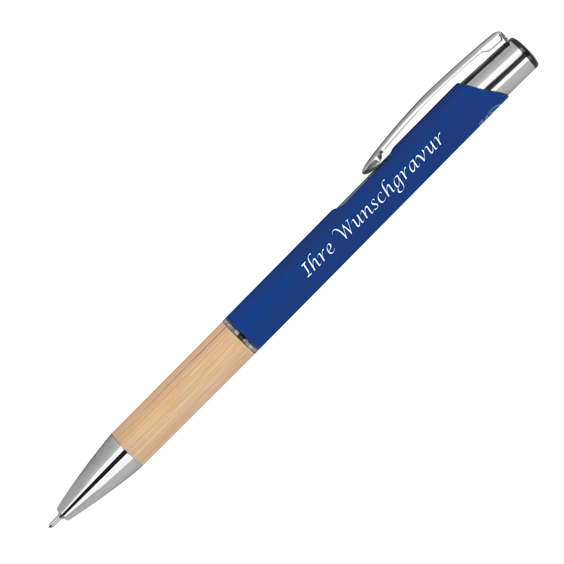 Gelschreiber aus Metall und Bambus-Holz mit Gravur / Farbe: blau