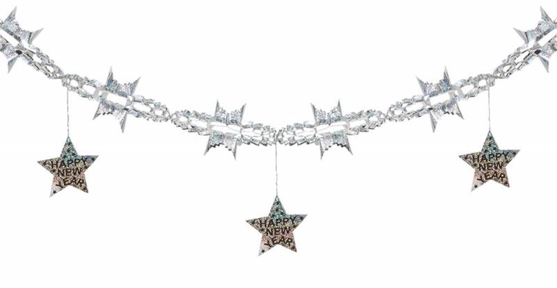 Glitzer Girlande "Happy New Year" / Farbe: silber