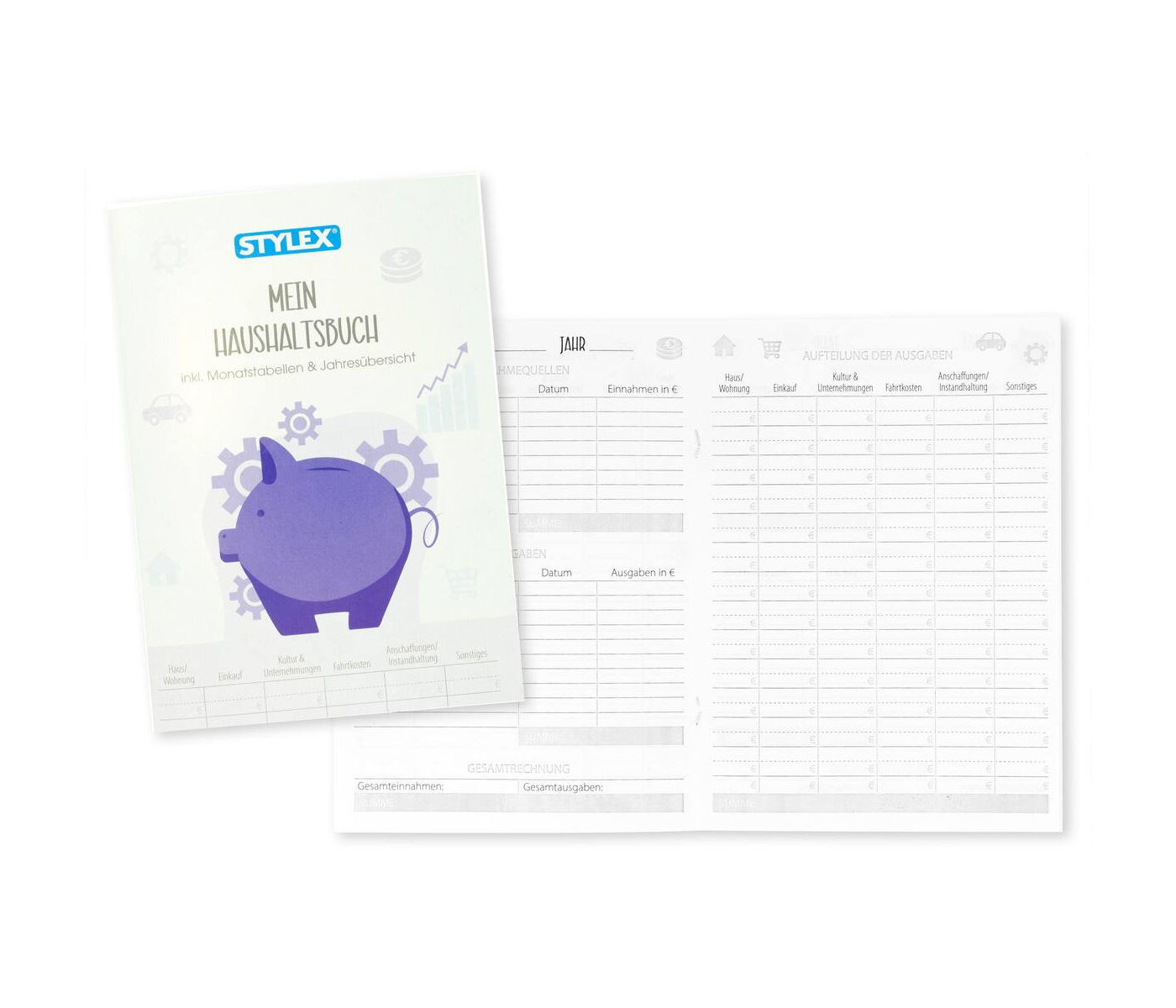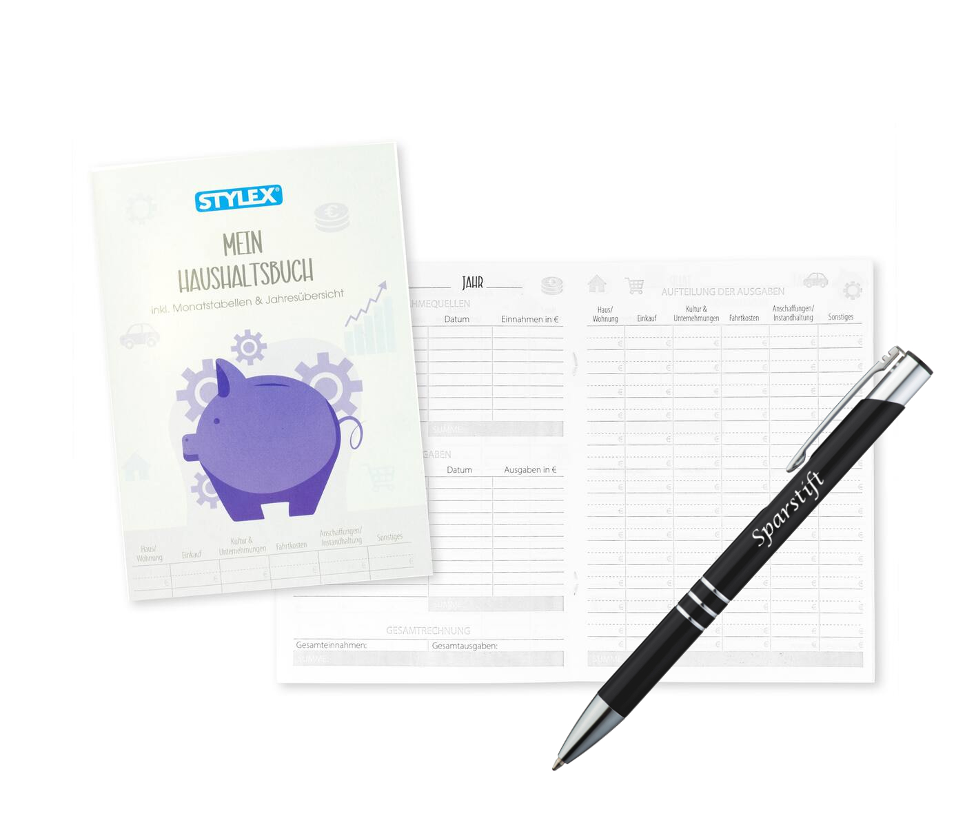 Haushaltsbuch + Metallkugelschreiber mit Gravur "Sparstift" / 40 Blatt / DIN A5
