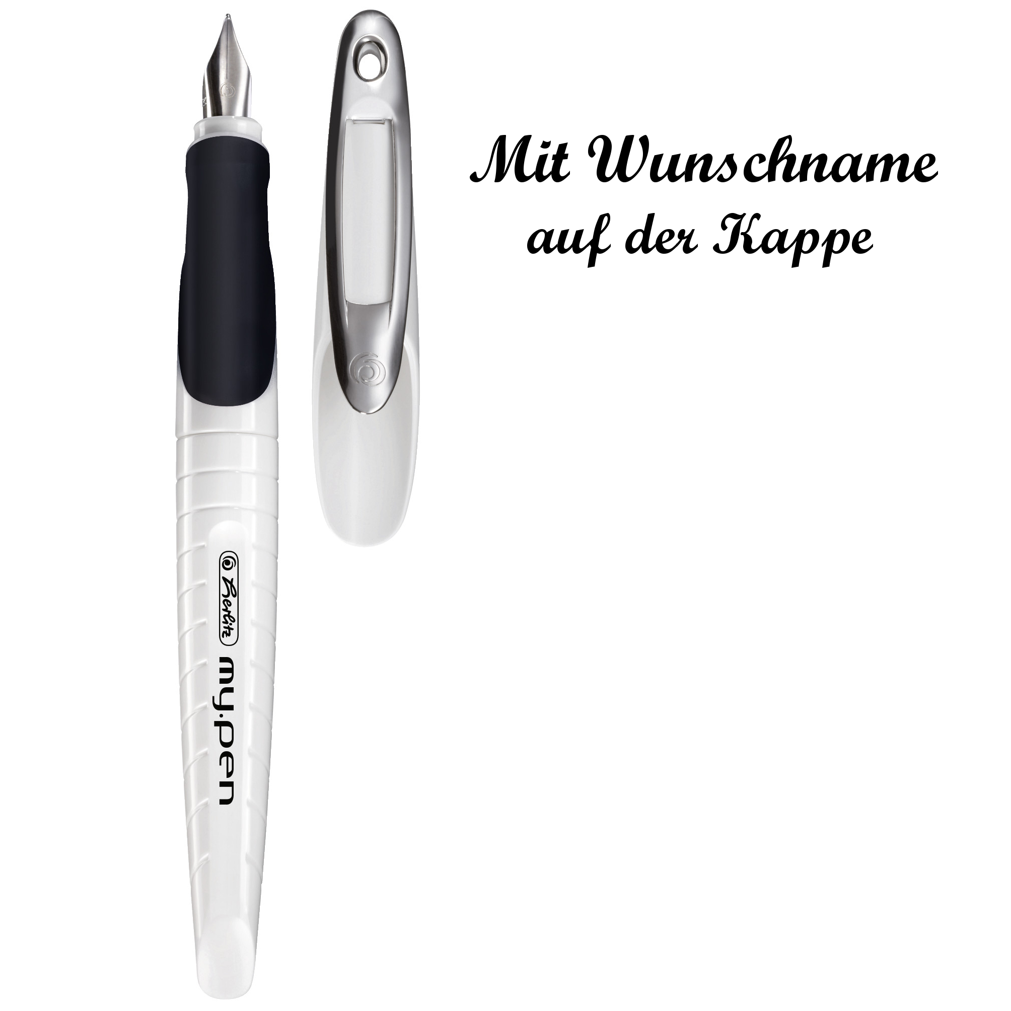 Herlitz Füllhalter mit Namensgravur - Linkshänder-Füller - Farbe: weiß/schwarz
