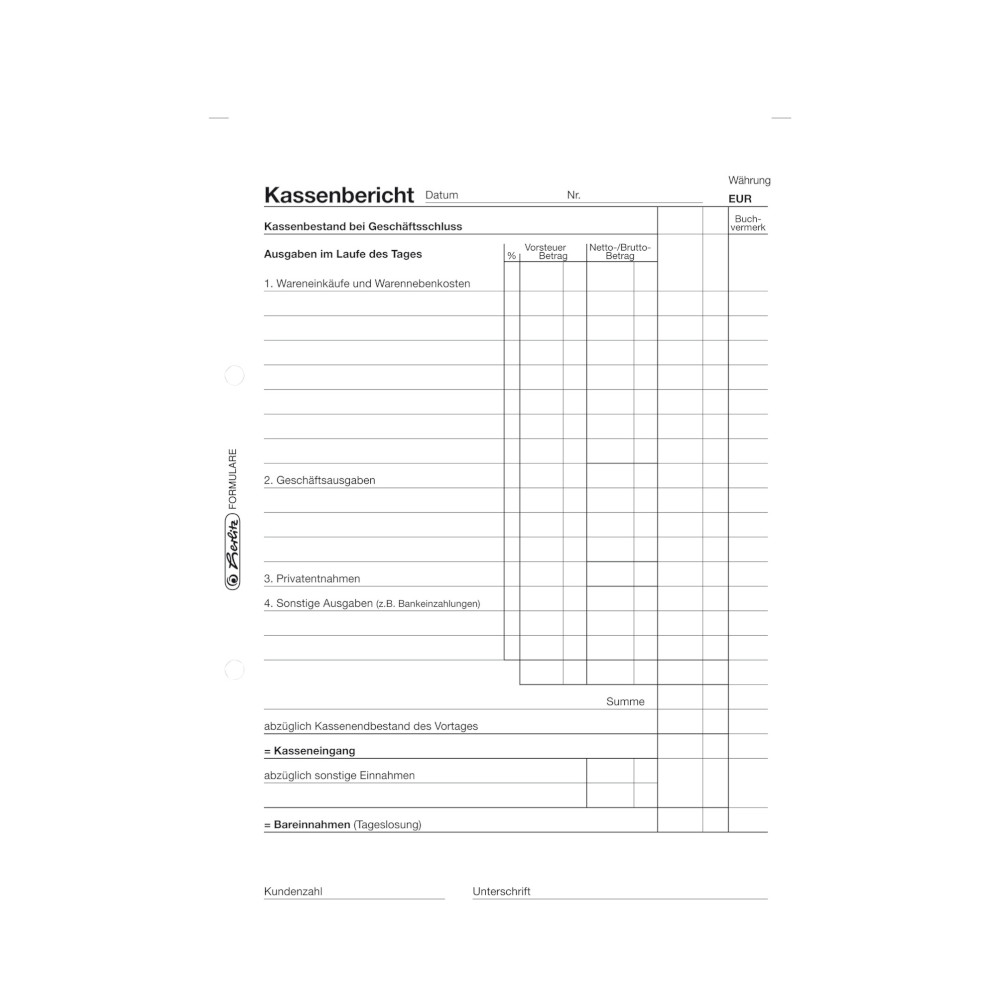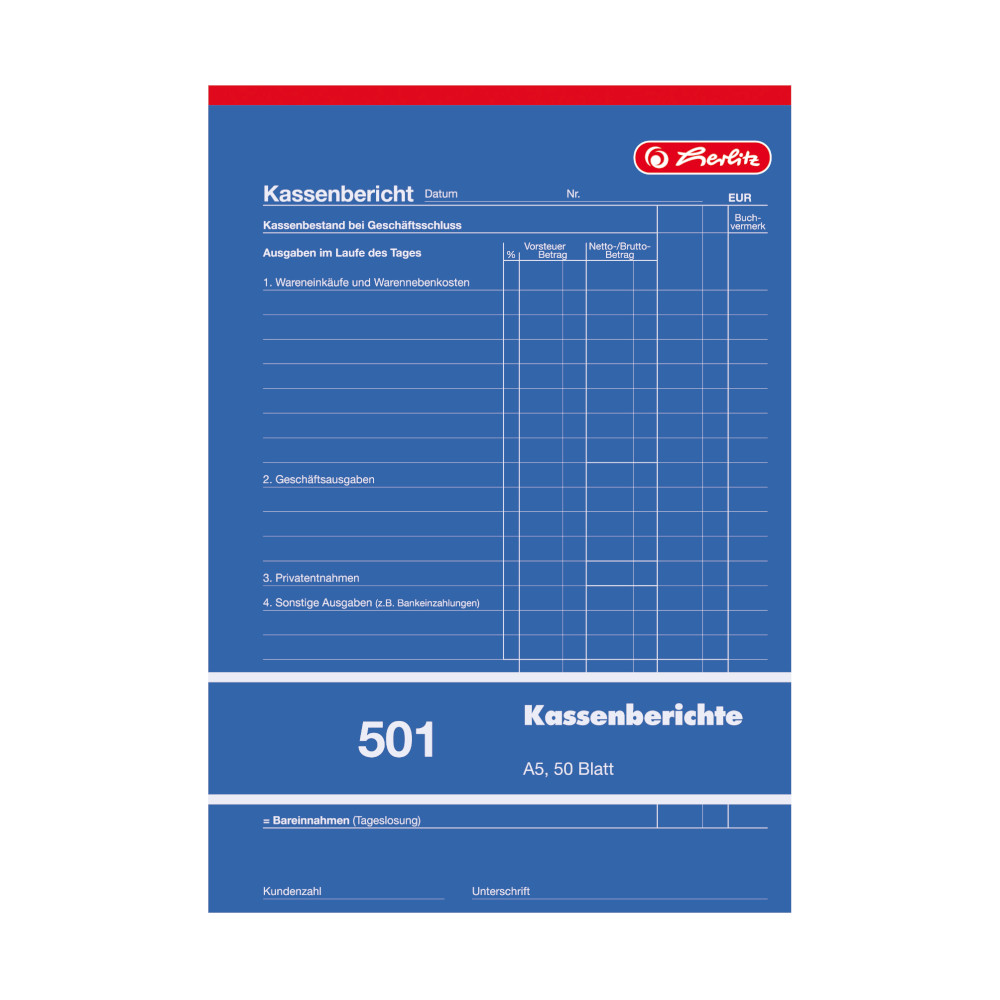 Herlitz Kassenberichtsblock 501 / A5 / 50 Blatt