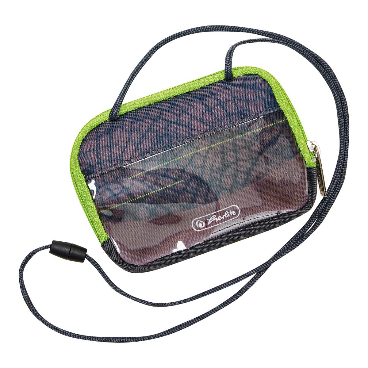 - mit Umhängeband, Sicherheitsverschluß, Reißverschlusstasche und Sichtfenster