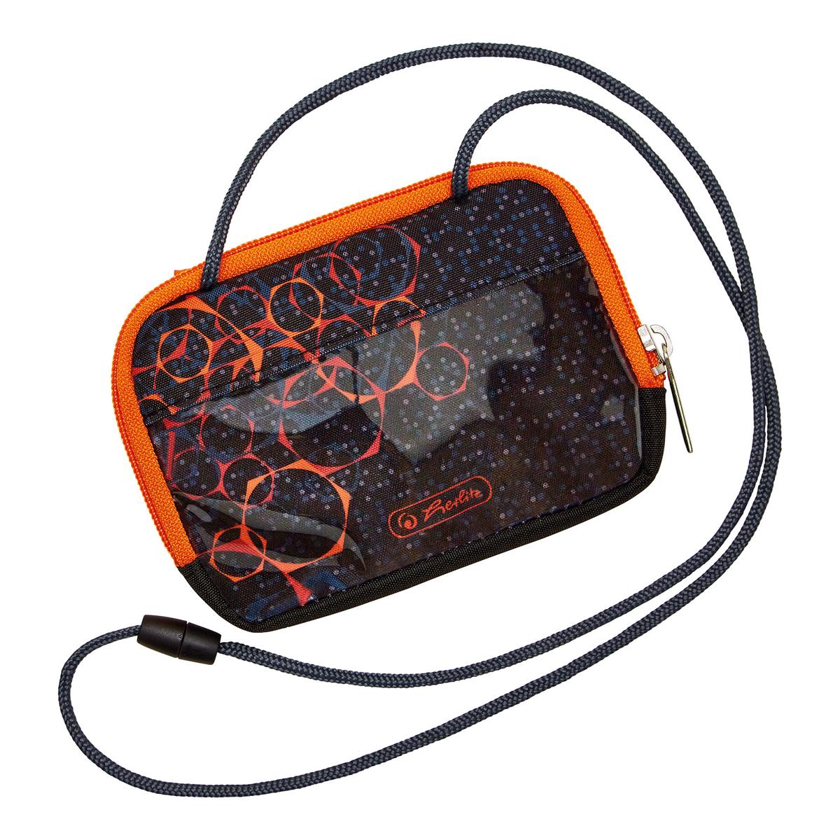 - mit Umhängeband, Sicherheitsverschluß, Reißverschlusstasche und Sichtfenster
