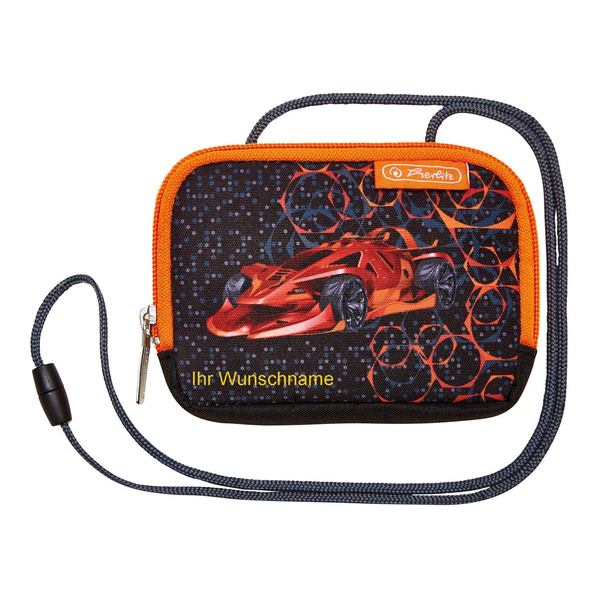 Herlitz Kinder Brustbeutel mit Gravur / Geldbörse / "Rennauto - Mechanic"