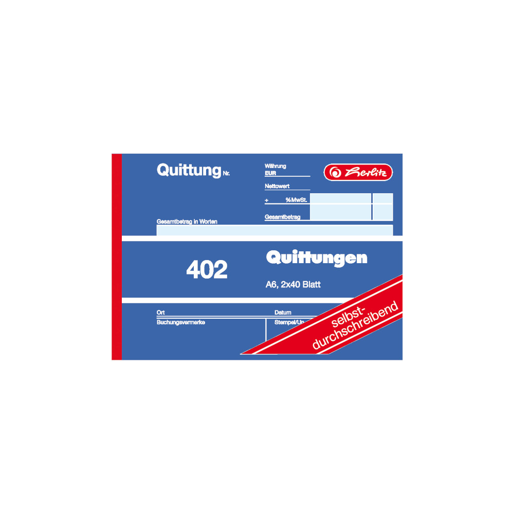Produktinformationen "Herlitz Quittungsblock 402 / A6 quer / 2x40 Blatt / selbstdurchschreibend"