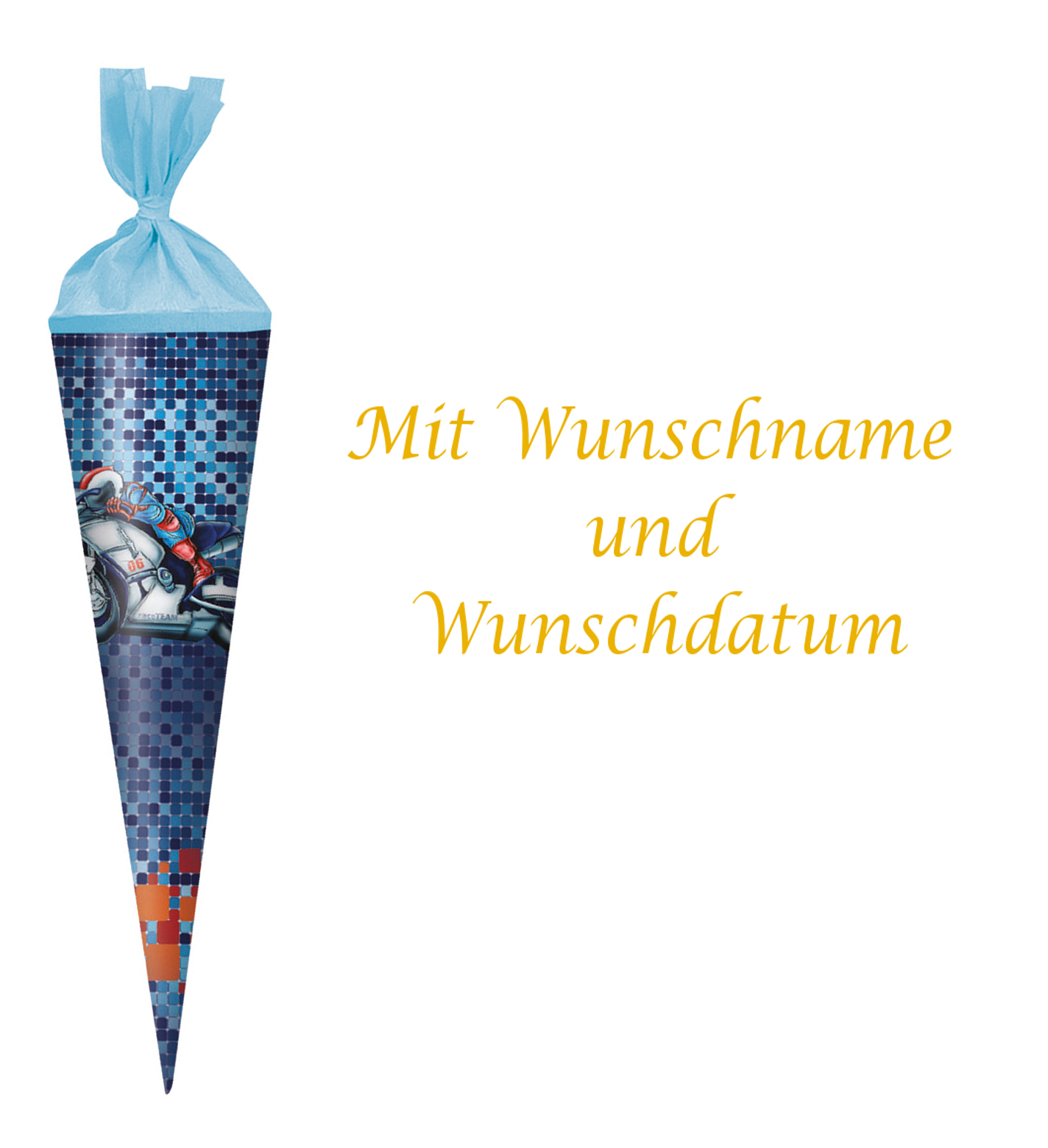 Produktinformationen "Herlitz Schultüte mit gold gefärbter Gravur / Zuckertüte / 35cm / rund / "Biker""