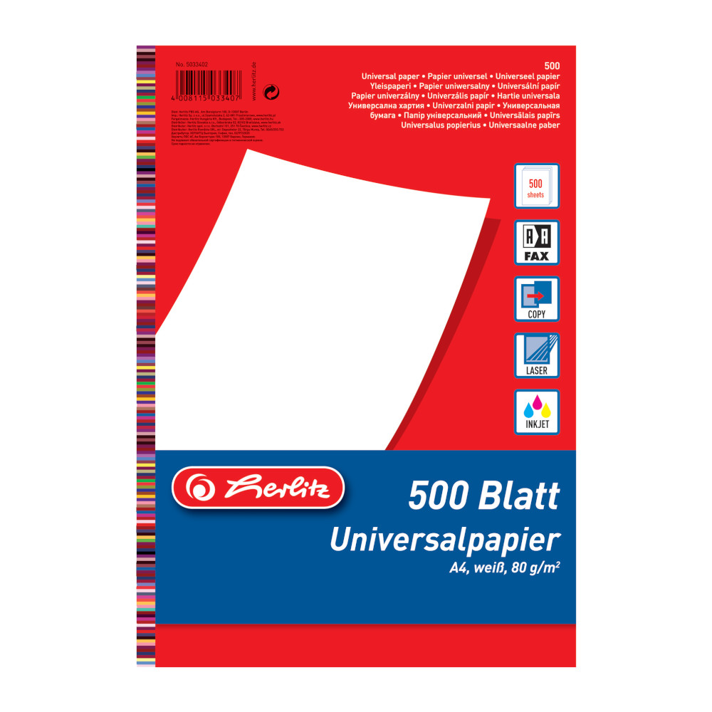 Produktinformationen "Herlitz Universalpapier / Kopierpapier / 500 Blatt / A4 / 80g/m²"