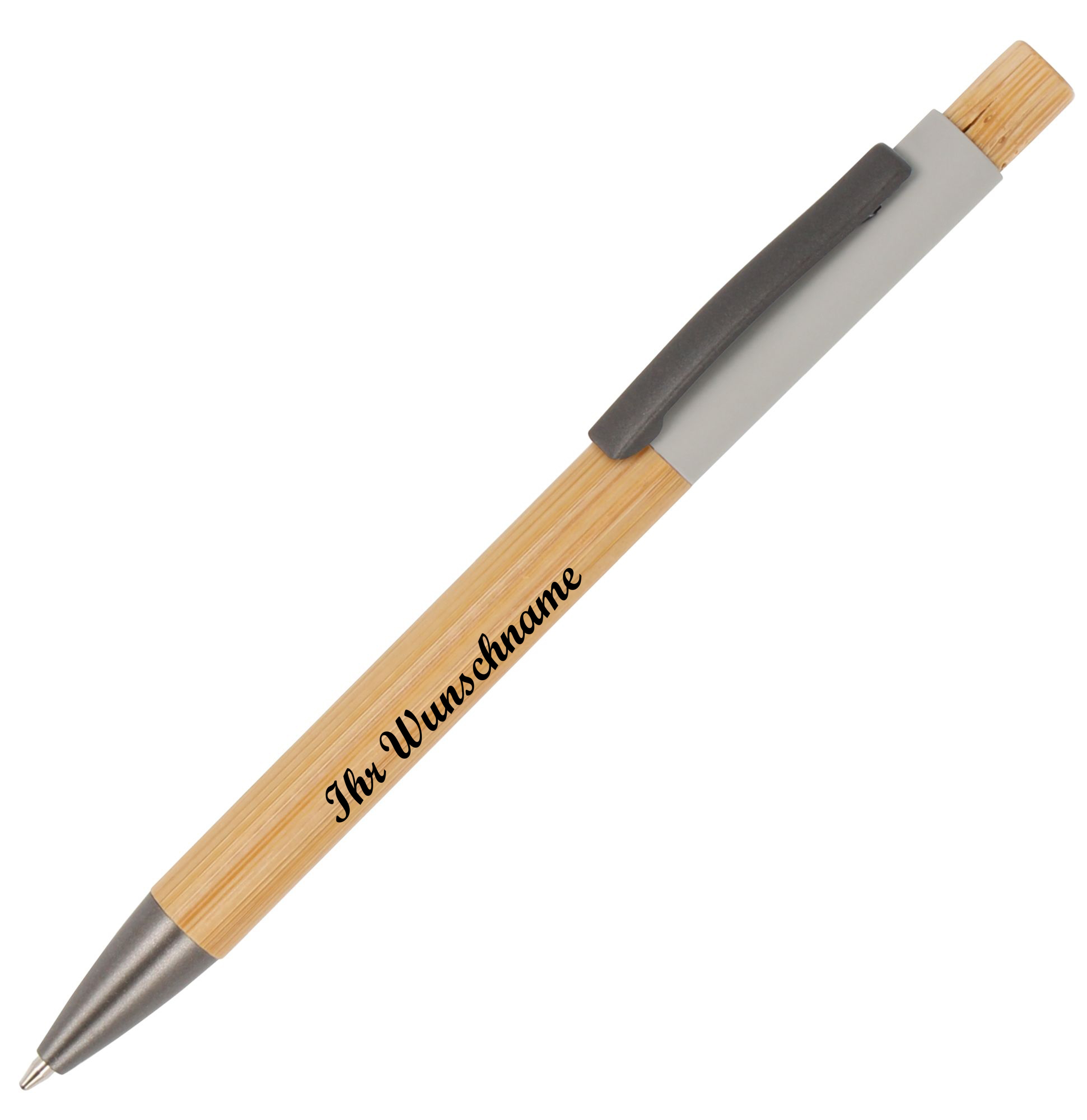 Holz-Kugelschreiber mit Namensgravur - Farbe: natur-grau