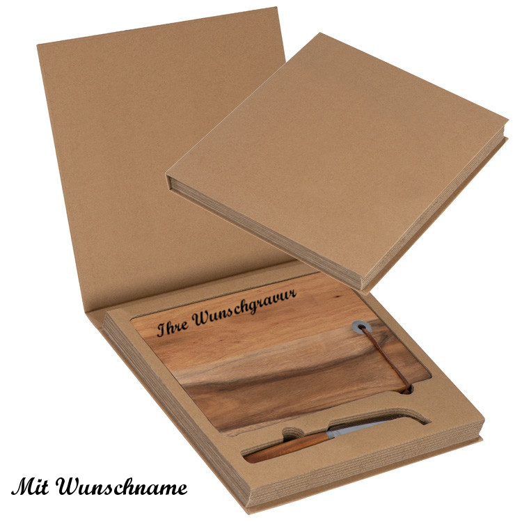 Holzbrett mit Namensgravur - mit Käsemesser - Käsebrett