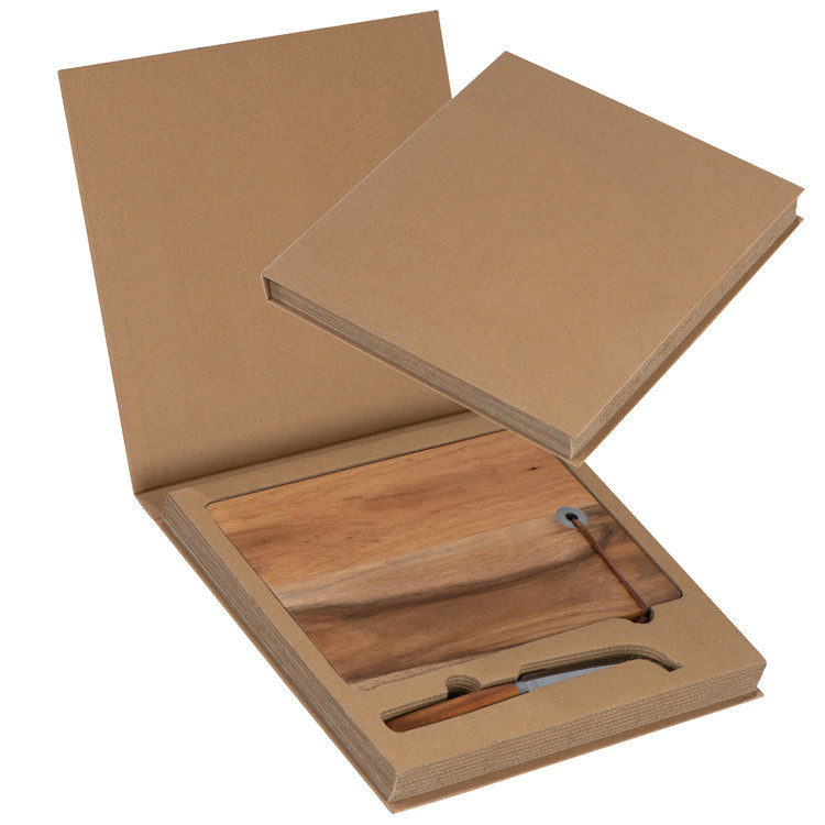 - bestehend aus einem Holzbrett mit Aufhänger aus Leder und einem Käsemesser aus Edelstahl