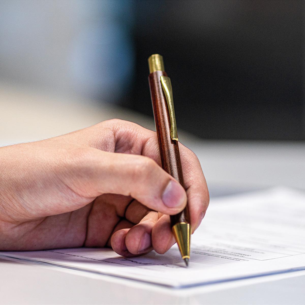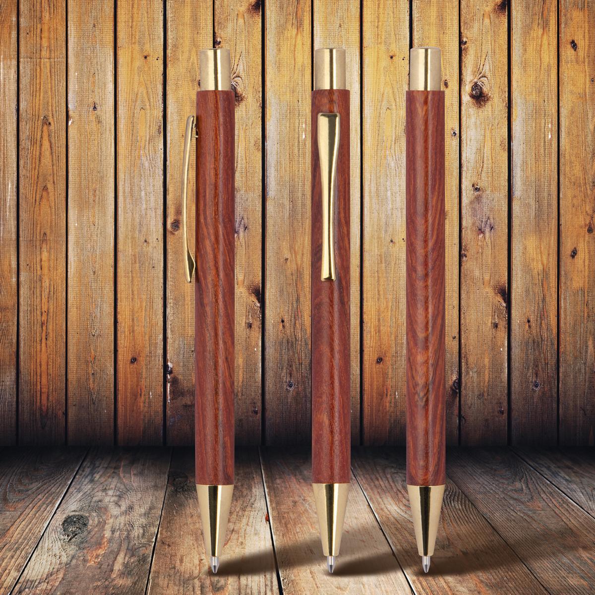 Holzkugelschreiber mit goldenen Applikationen mit Namensgravur