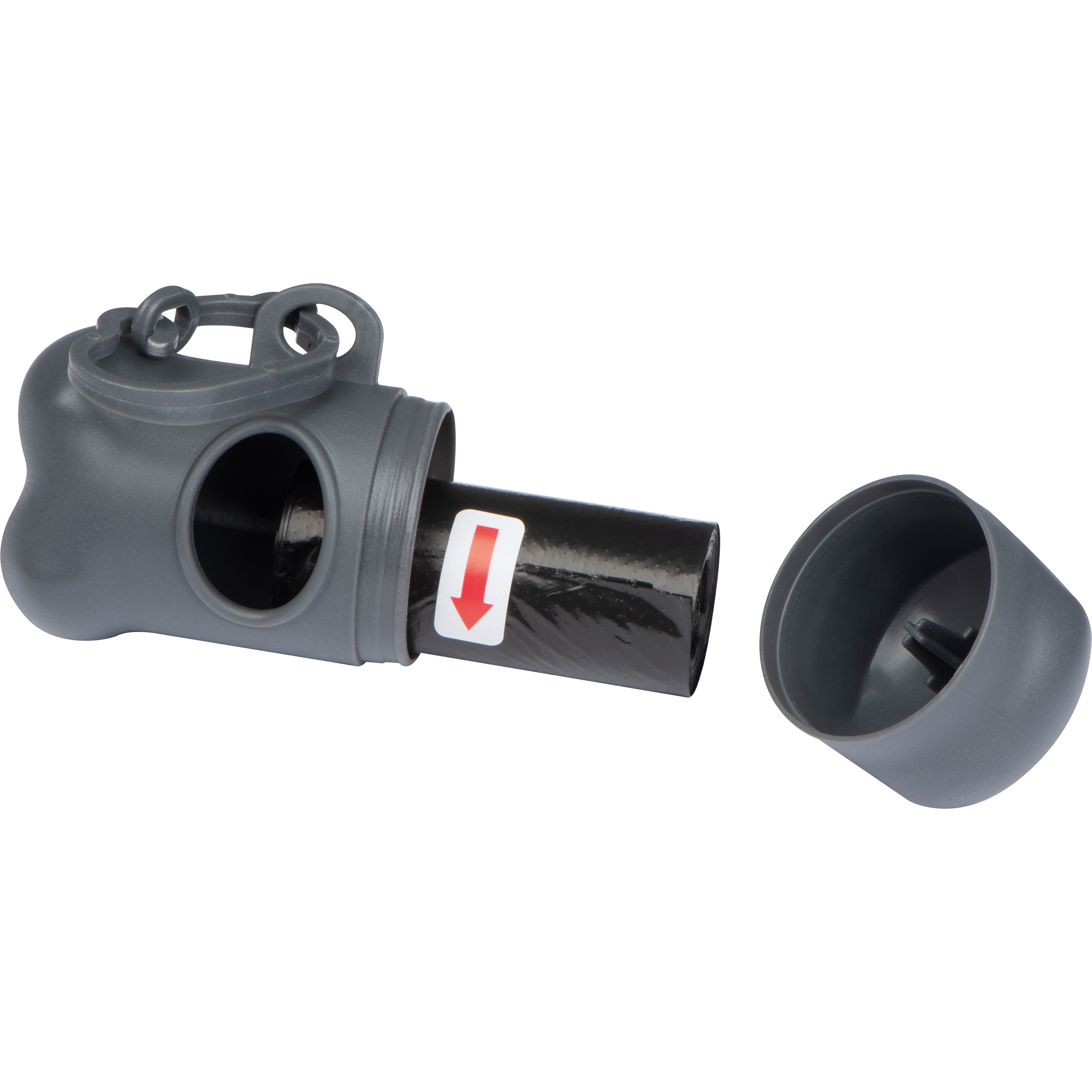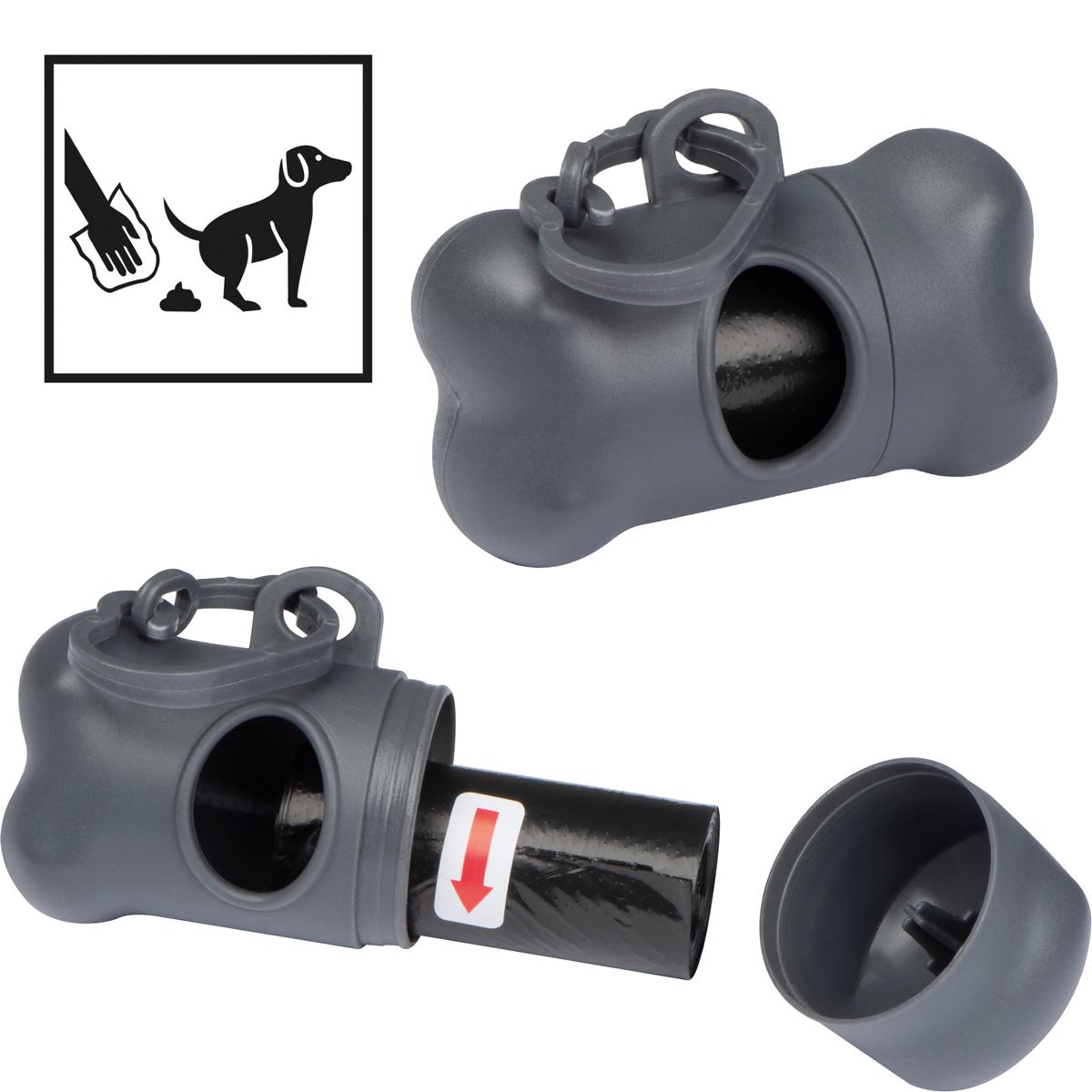 Hundekotbeutelspender in der Form eines Knochens mit Karabinerhaken / Kotbutel