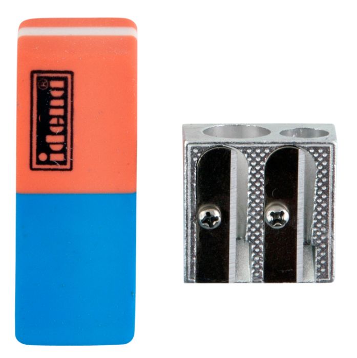 Produktinformationen "Idena Radierer für Bleistifte und Tinte + 1 Metall Doppelanspitzer"