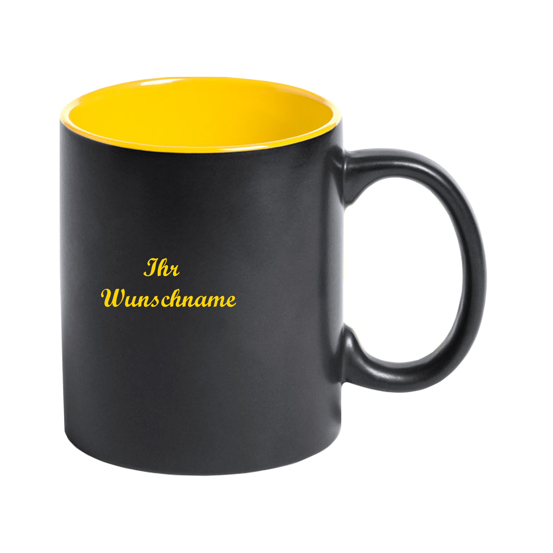 Keramiktasse mit Namensgravur - Kaffeetasse - 350ml - aussen schwarz,innen gelb