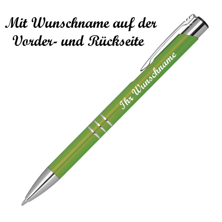 Kugelschreiber aus Metall mit beidseitige Namensgravur - Farbe: hellgrün