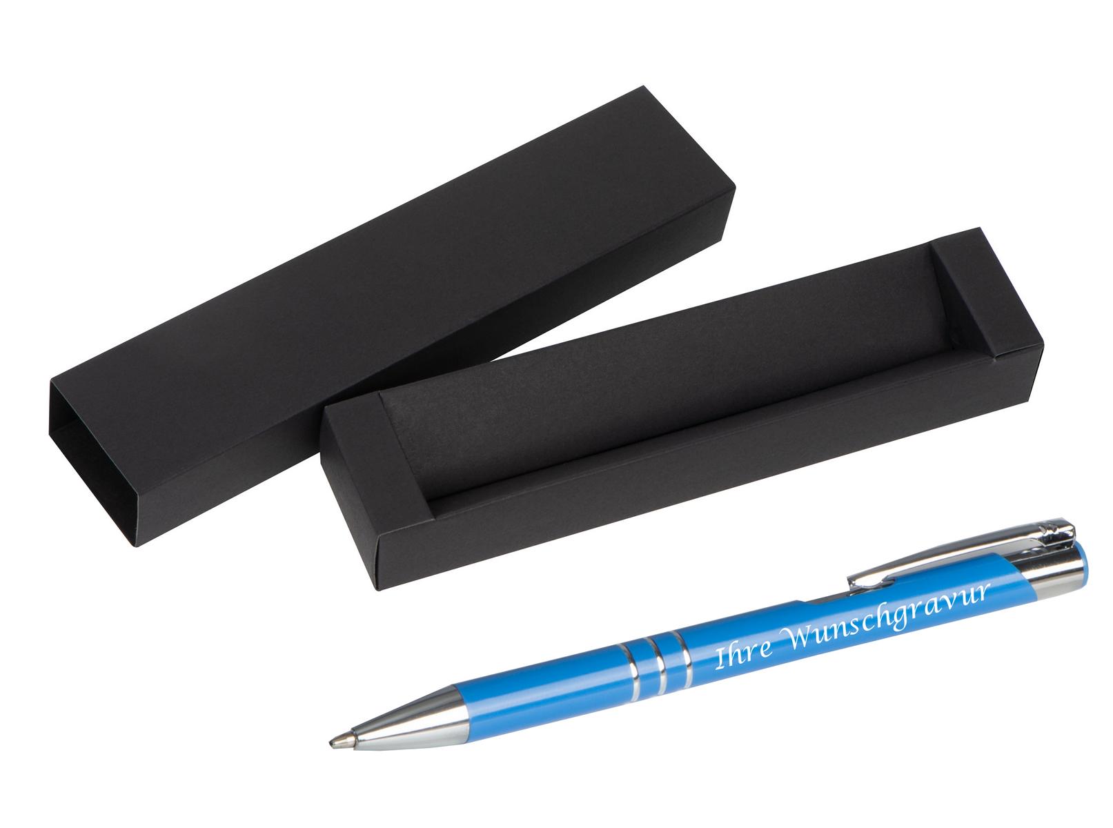Produktinformationen "Kugelschreiber aus Metall mit Gravur / mit Pappetui / Farbe: mittelblau"