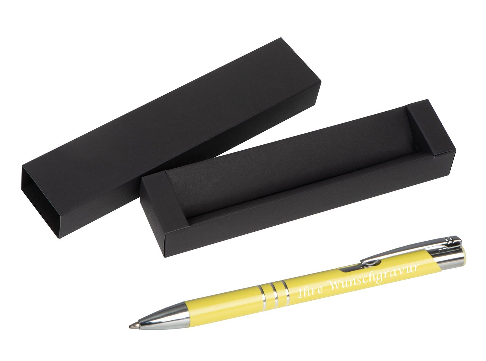Kugelschreiber aus Metall mit Gravur / mit Pappetui / Farbe: pastell gelb