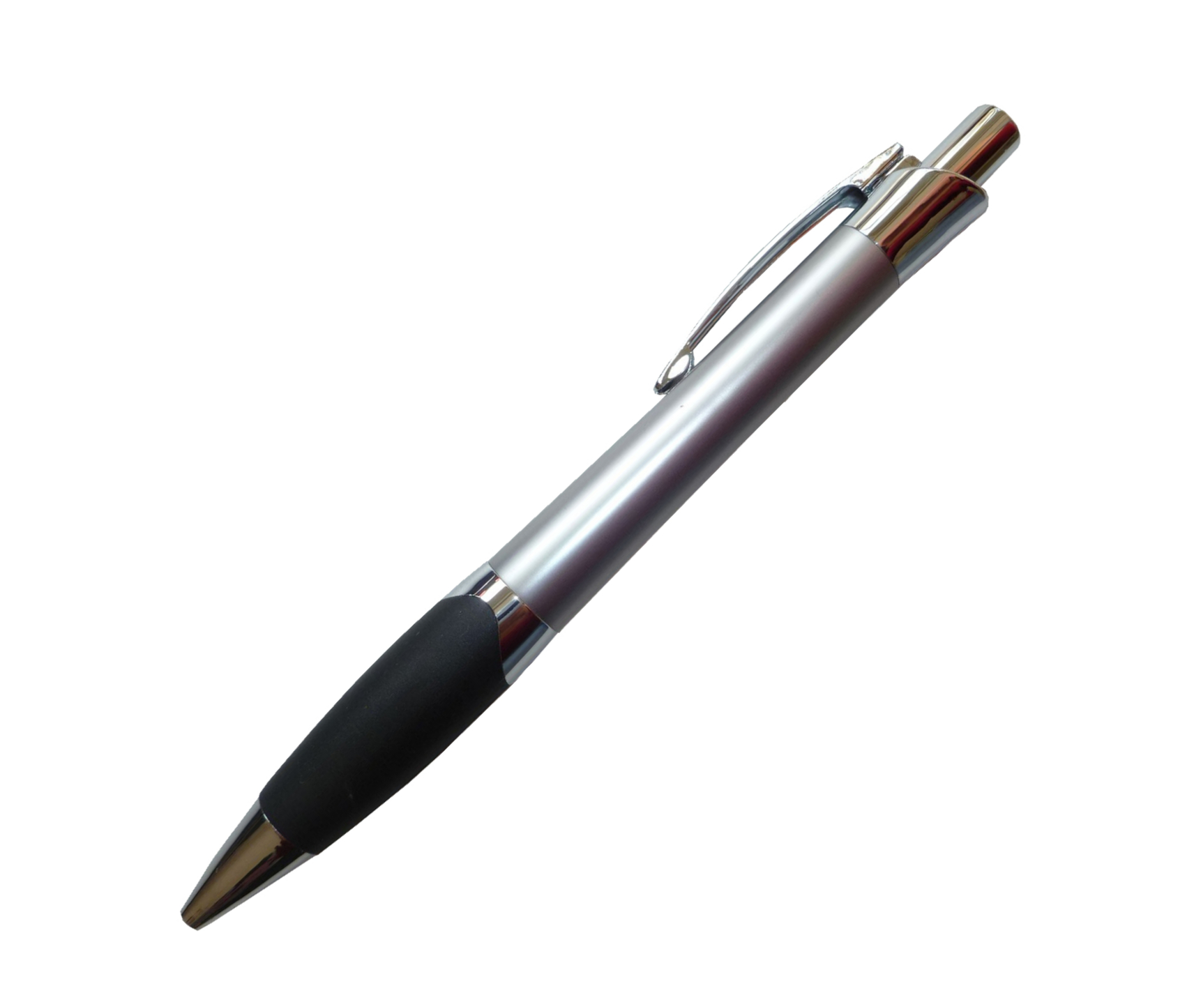 Kugelschreiber aus Metall / mit Griffgummimanschette / Farbe: silber