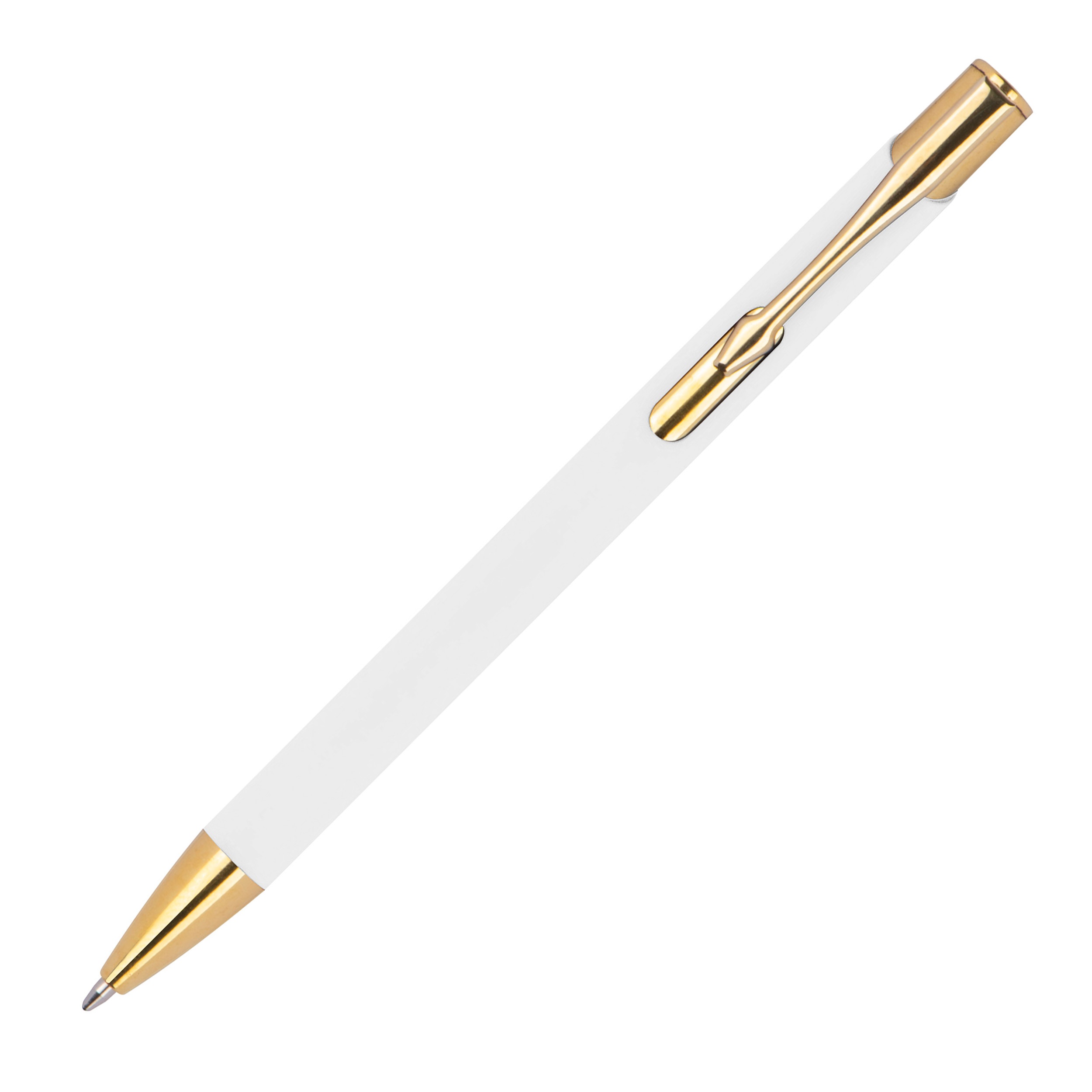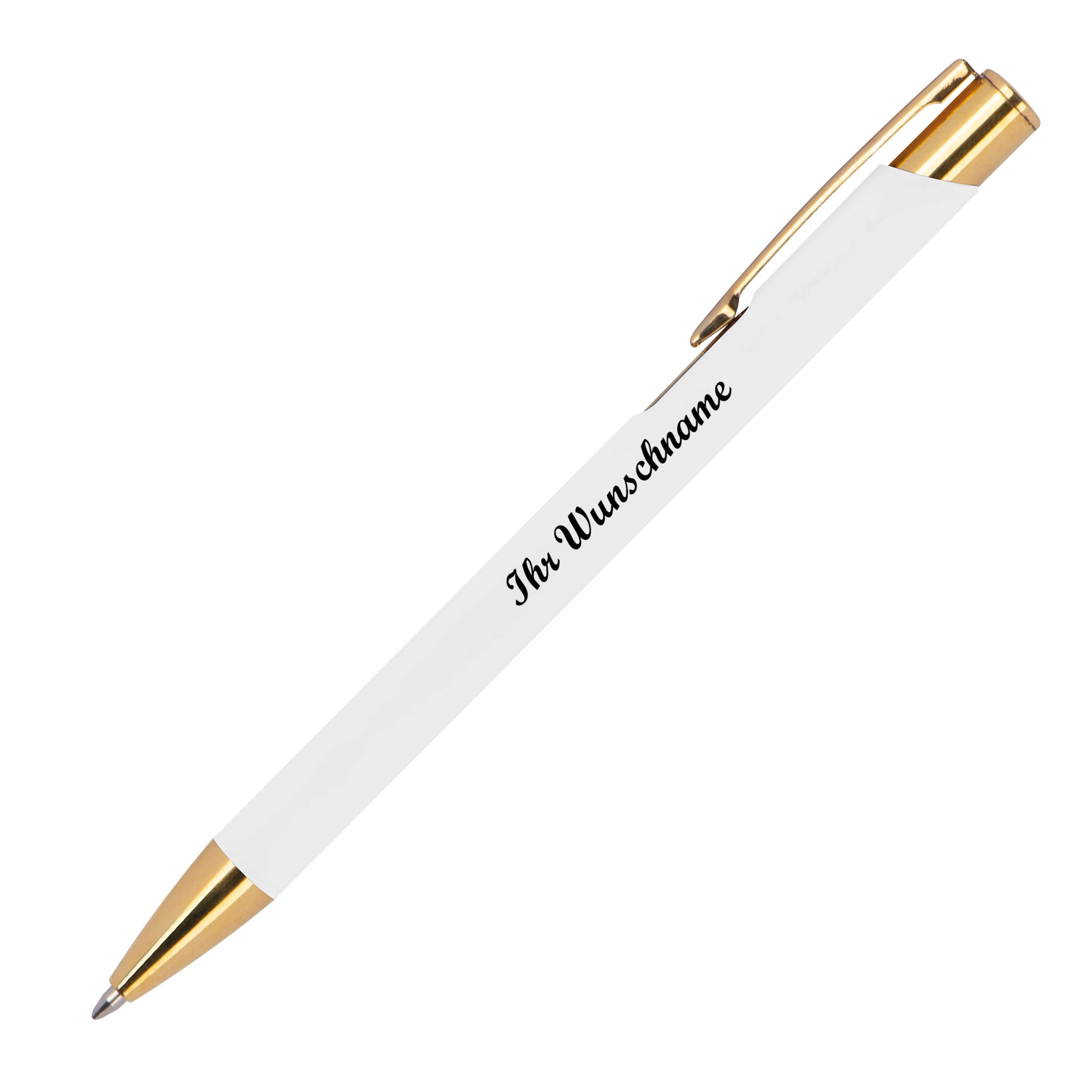 Kugelschreiber aus Metall mit Namensgravur - mit goldene Applikationen - weiß
