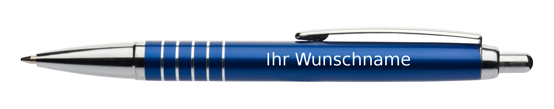 Kugelschreiber mit Gravur / aus Aluminium / mit 5 Zierringen / Farbe: blau