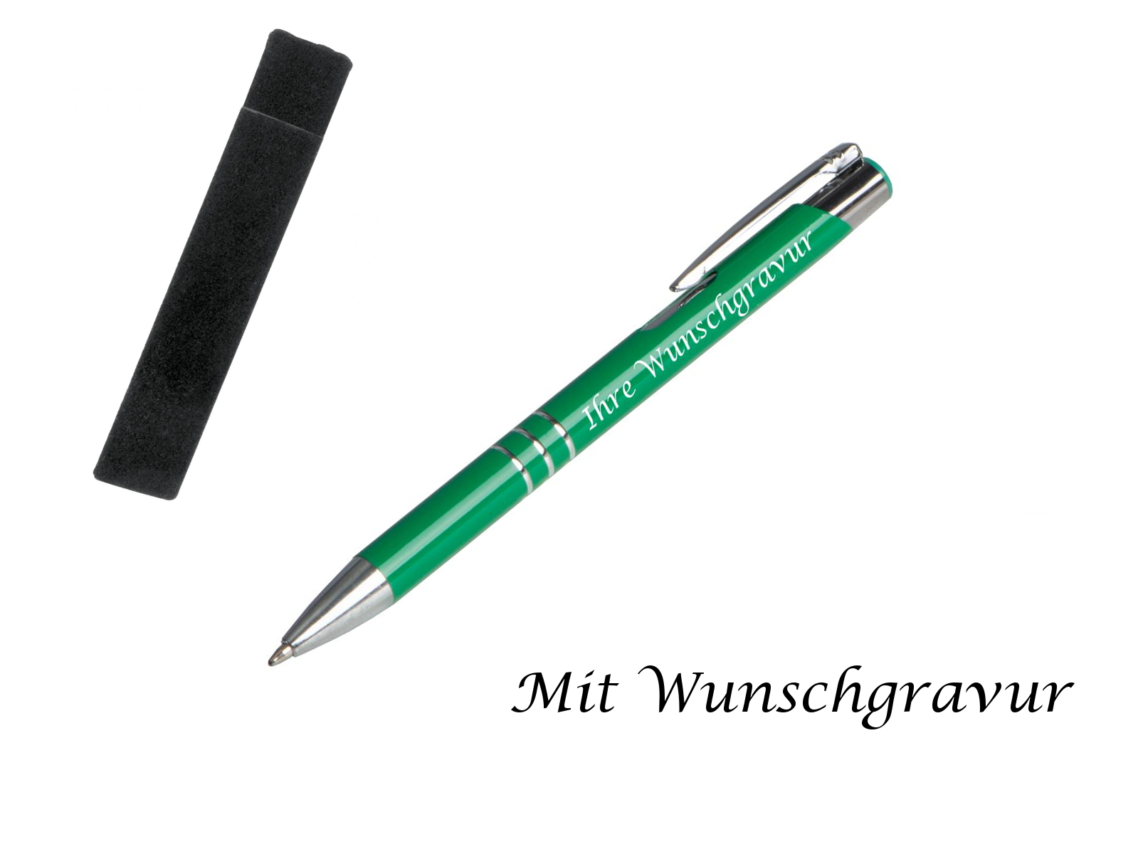 Kugelschreiber mit Gravur / aus Metall mit Velouretui / Farbe: mittelgrün
