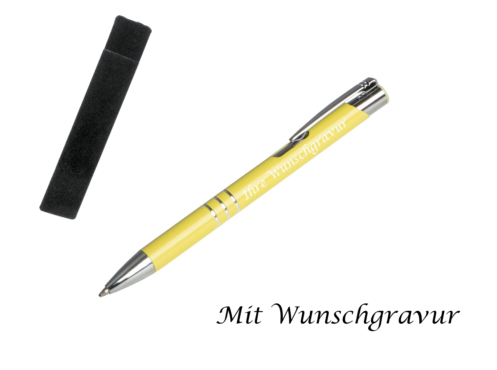 Kugelschreiber mit Gravur / aus Metall mit Velouretui / Farbe: pastell gelb