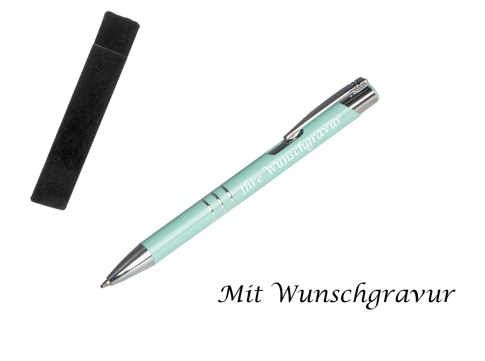 Kugelschreiber mit Gravur / aus Metall mit Velouretui / Farbe: pastell mint