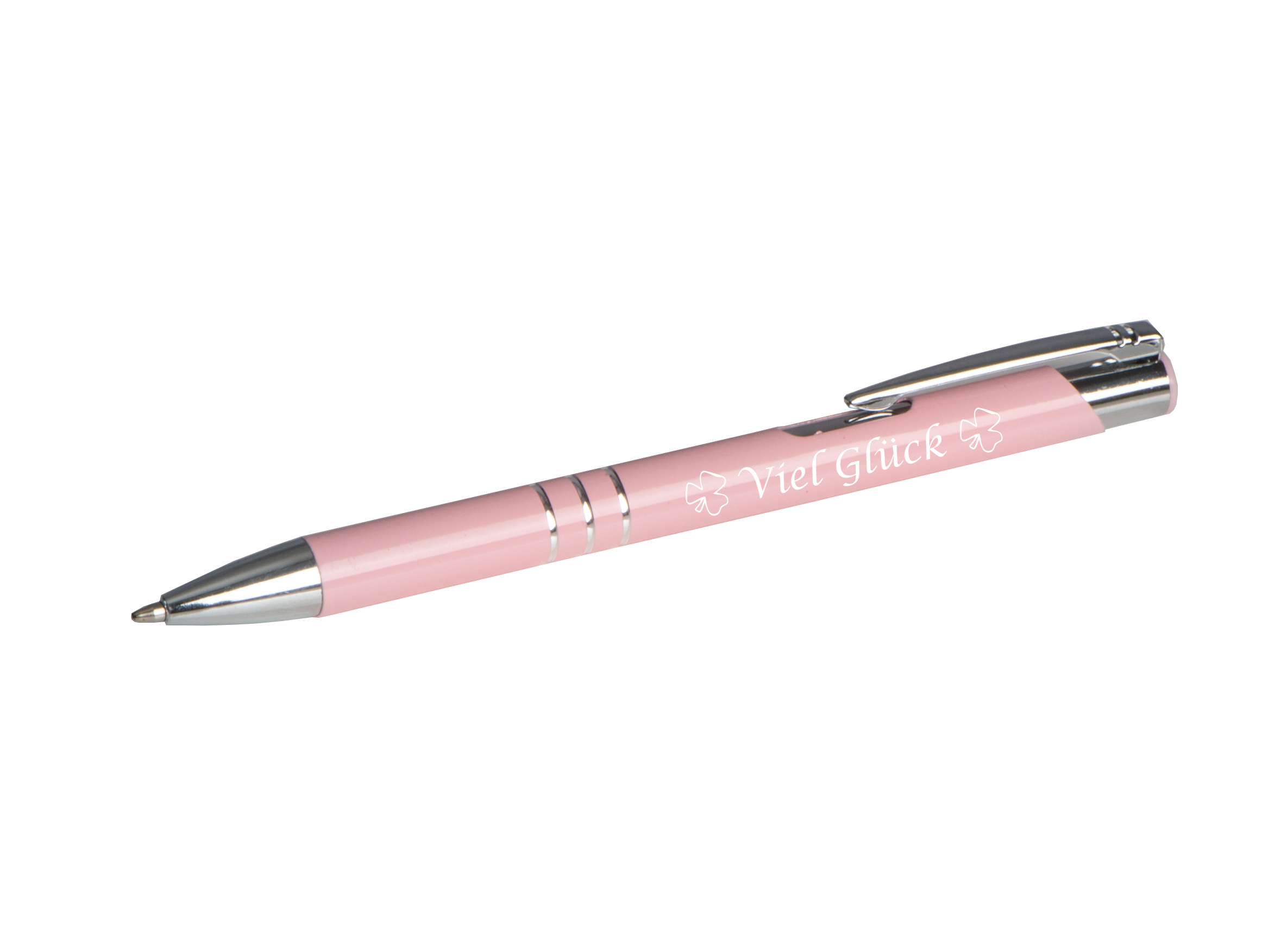 Kugelschreiber mit Gravur "Viel Glück" / aus Metall / Farbe: pastell rosa