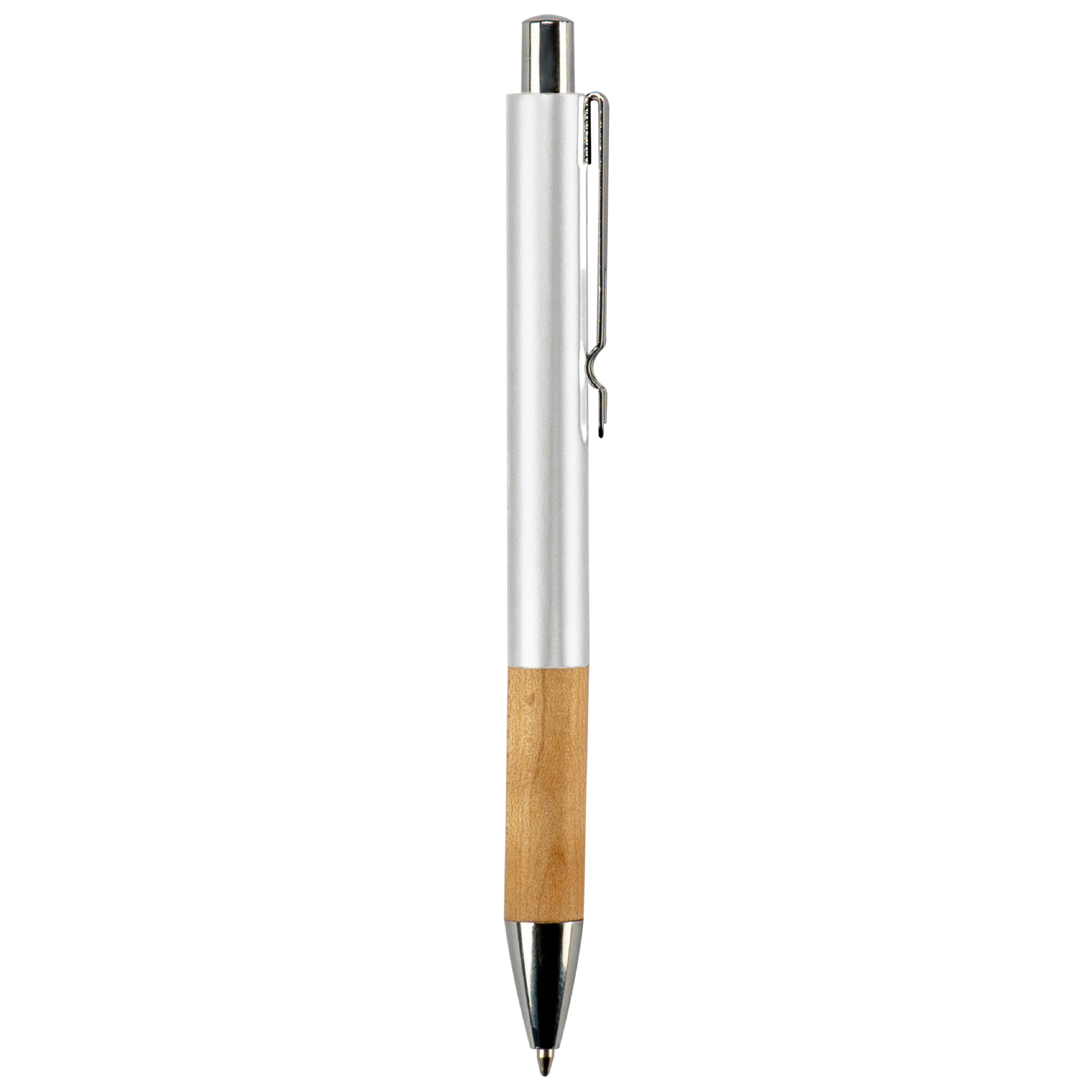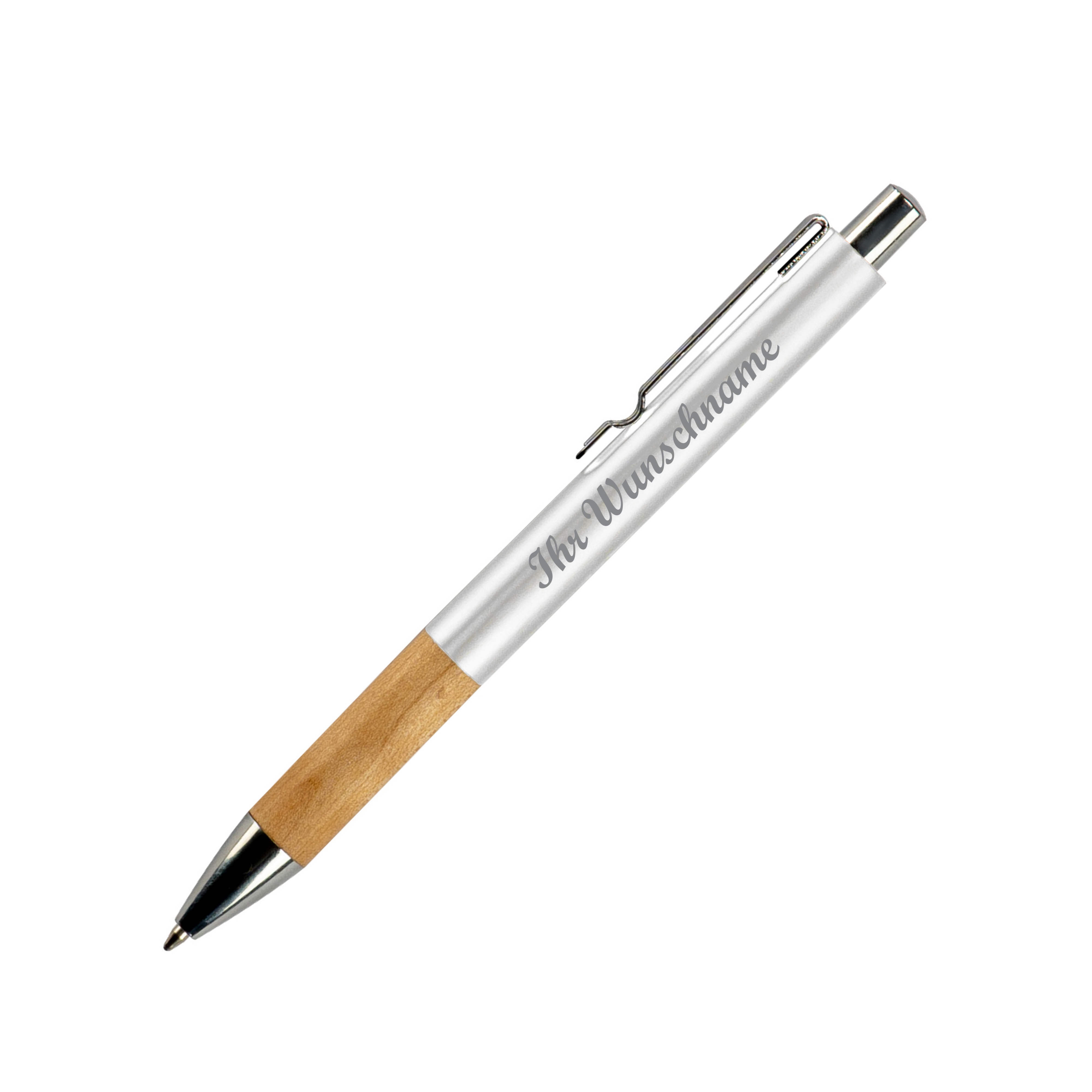 Kugelschreiber mit Namensgravur - aus Metall mit Holzgriffzone - Farbe: silber