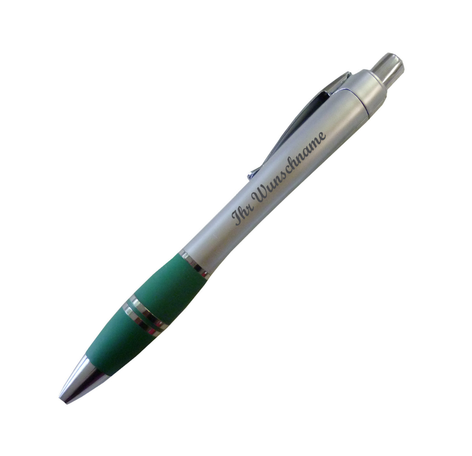 Kugelschreiber mit Namensgravur - Farbe: silber-grün