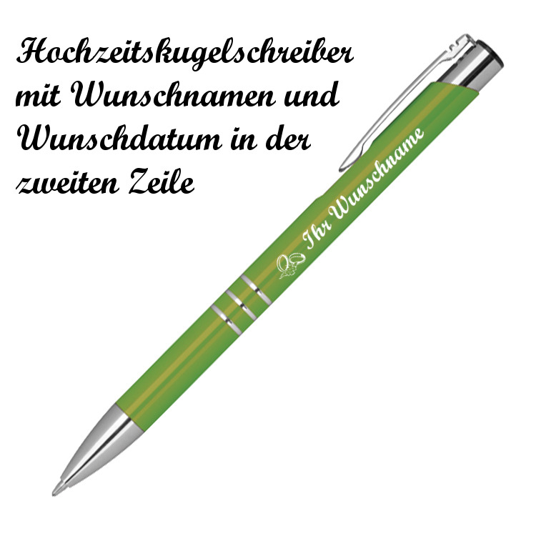 Produktinformationen "Kugelschreiber mit Namensgravur "Hochzeit" - aus Metall - Farbe: hellgrün"
