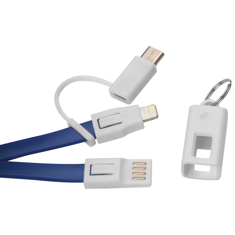 Ladekabel mit 4 verschiedene Anschlüssen / ideal zum Umhängen / Farbe: blau