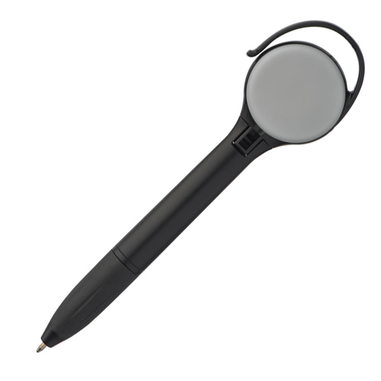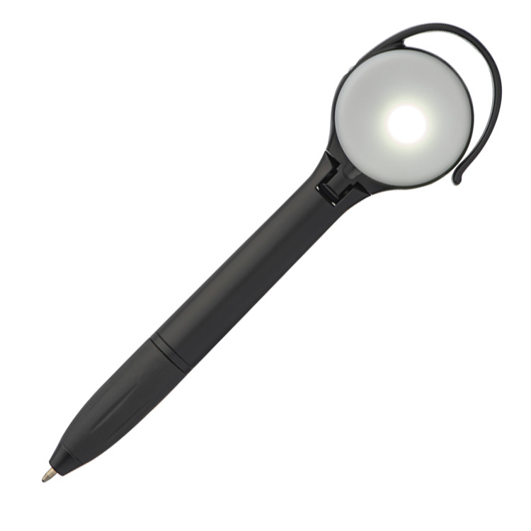 LED Kugelschreiber mit rotierendem, transparenten LED Kopf und Karabinerhaken