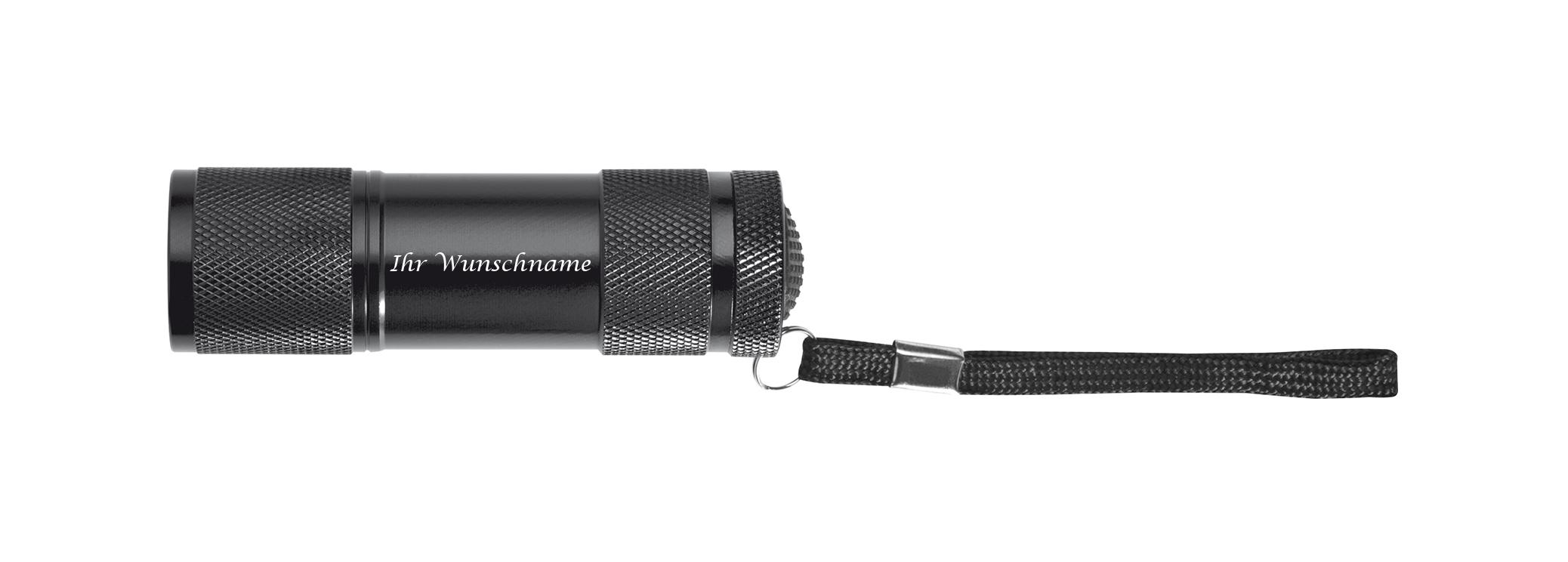 Produktinformationen "LED Taschenlampe mit Gravur / mit 9 LED / aus Aluminium / Farbe: schwarz"