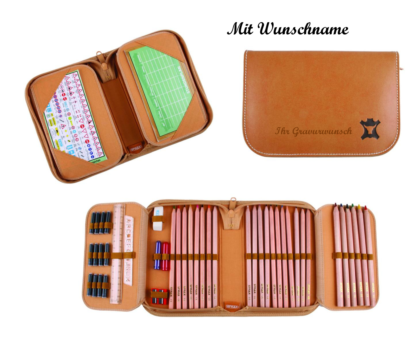 Leder Federtasche Federmappe "Back to the Natur" 47tlg. mit Namensgravur