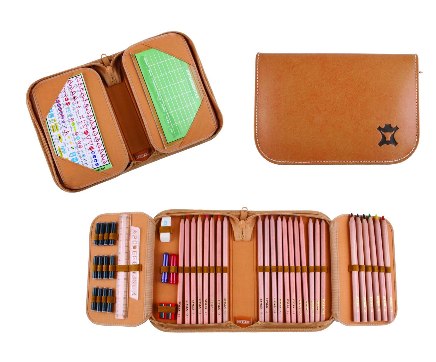 Produktinformationen "Leder Federtasche Federmappe Schüleretui "Back to the Natur" 47tlg."