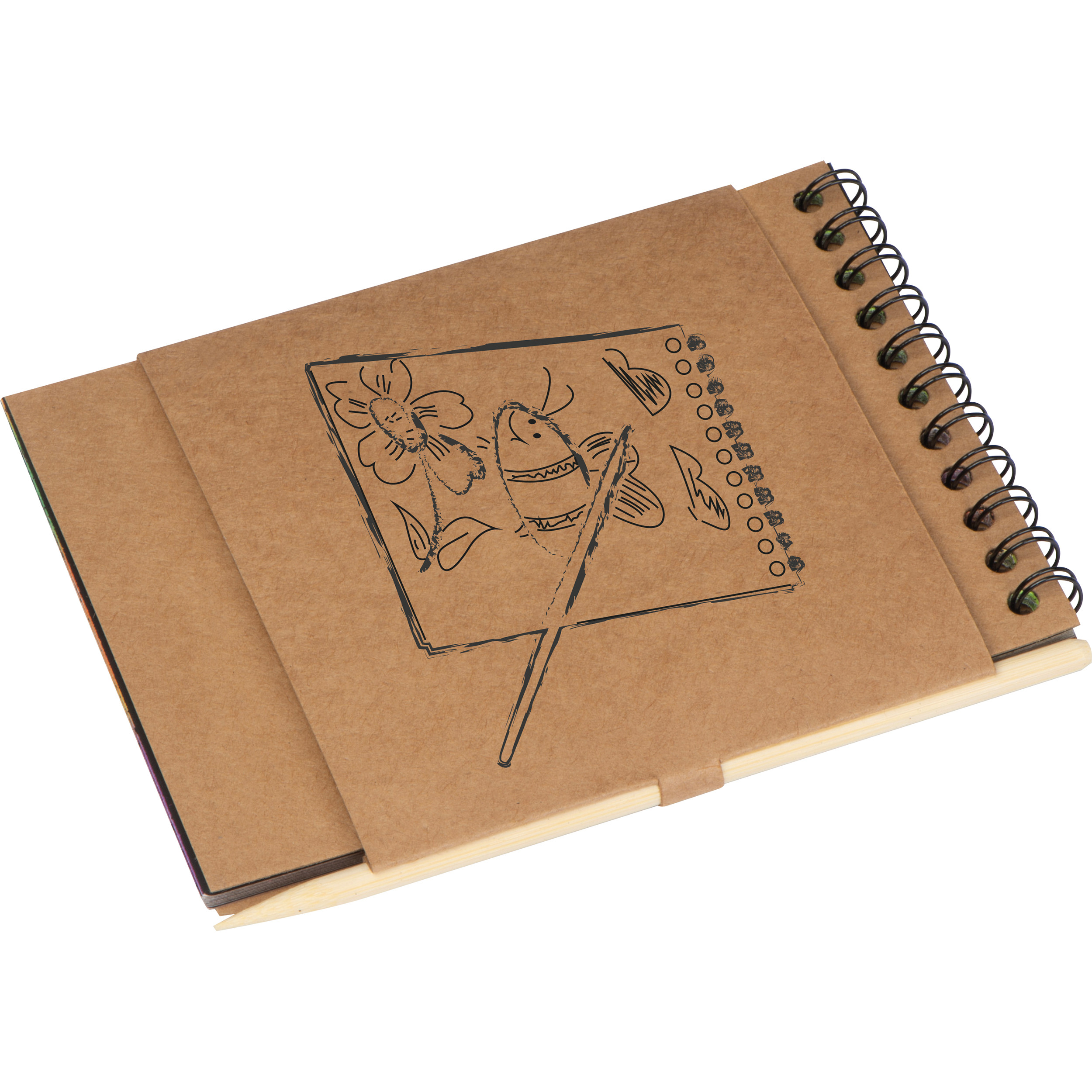 Malblock mit 10 Blatt Kratzpapier mit Holzstift