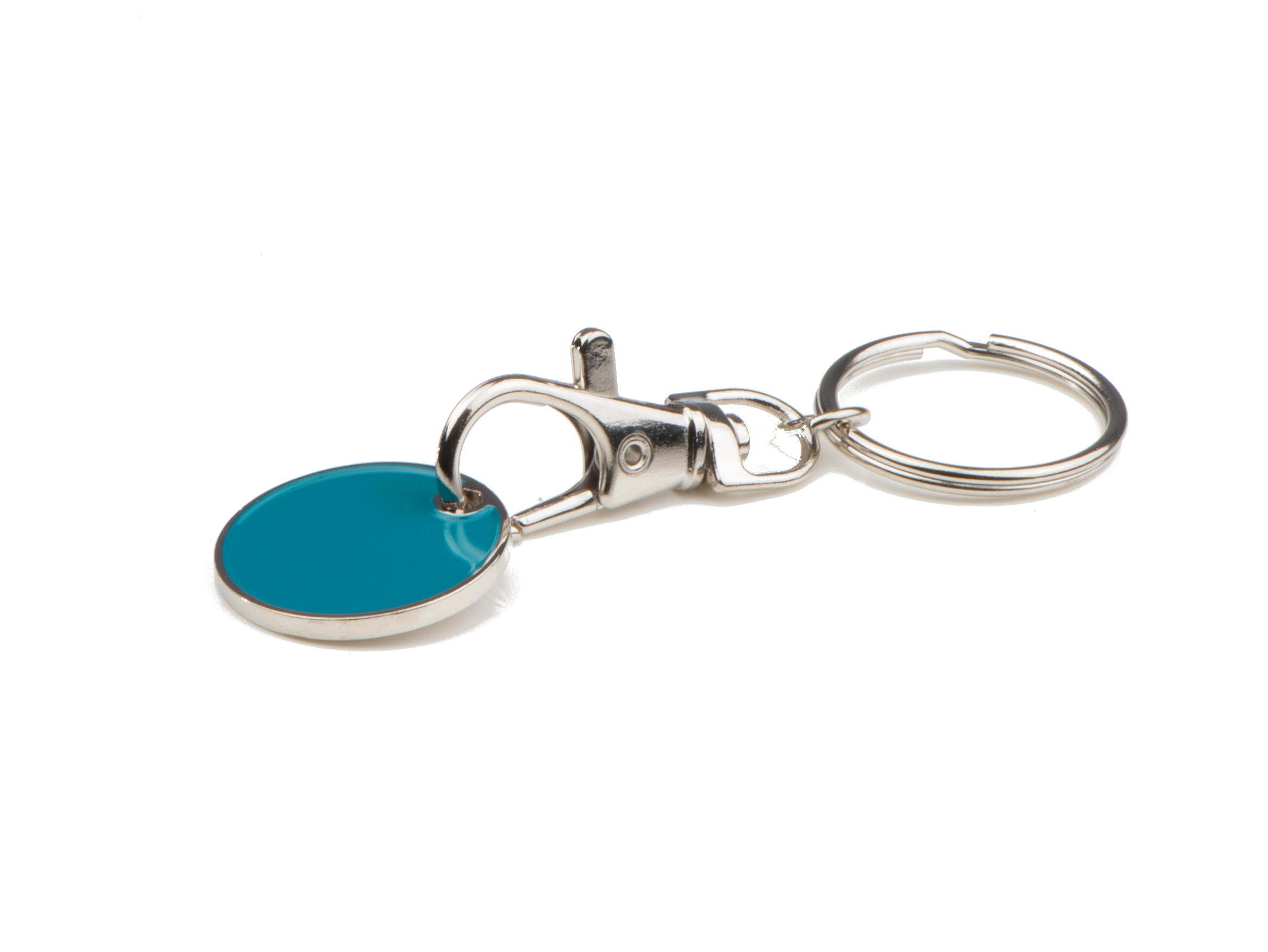 Metall Schlüsselanhänger mit Einkaufschip / Farbe: türkis