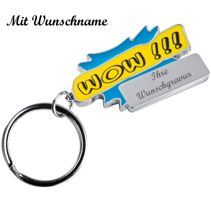 Produktinformationen "Metall Schlüsselanhänger "Wow!!!" mit Namensgravur - Farbe: hellblau"