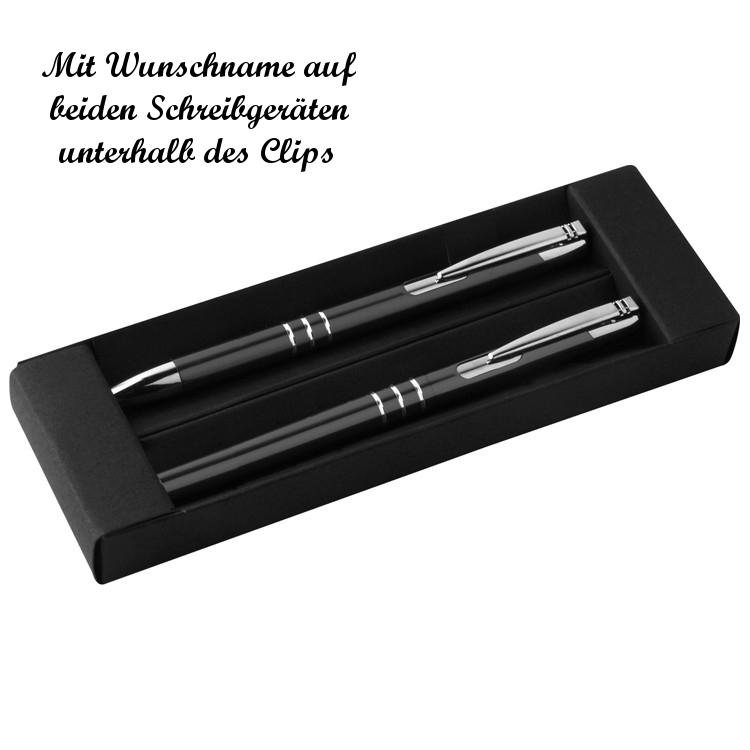 Metall Schreibset mit Namensgravur - Kugelschreiber + Rollerball -Farbe: schwarz