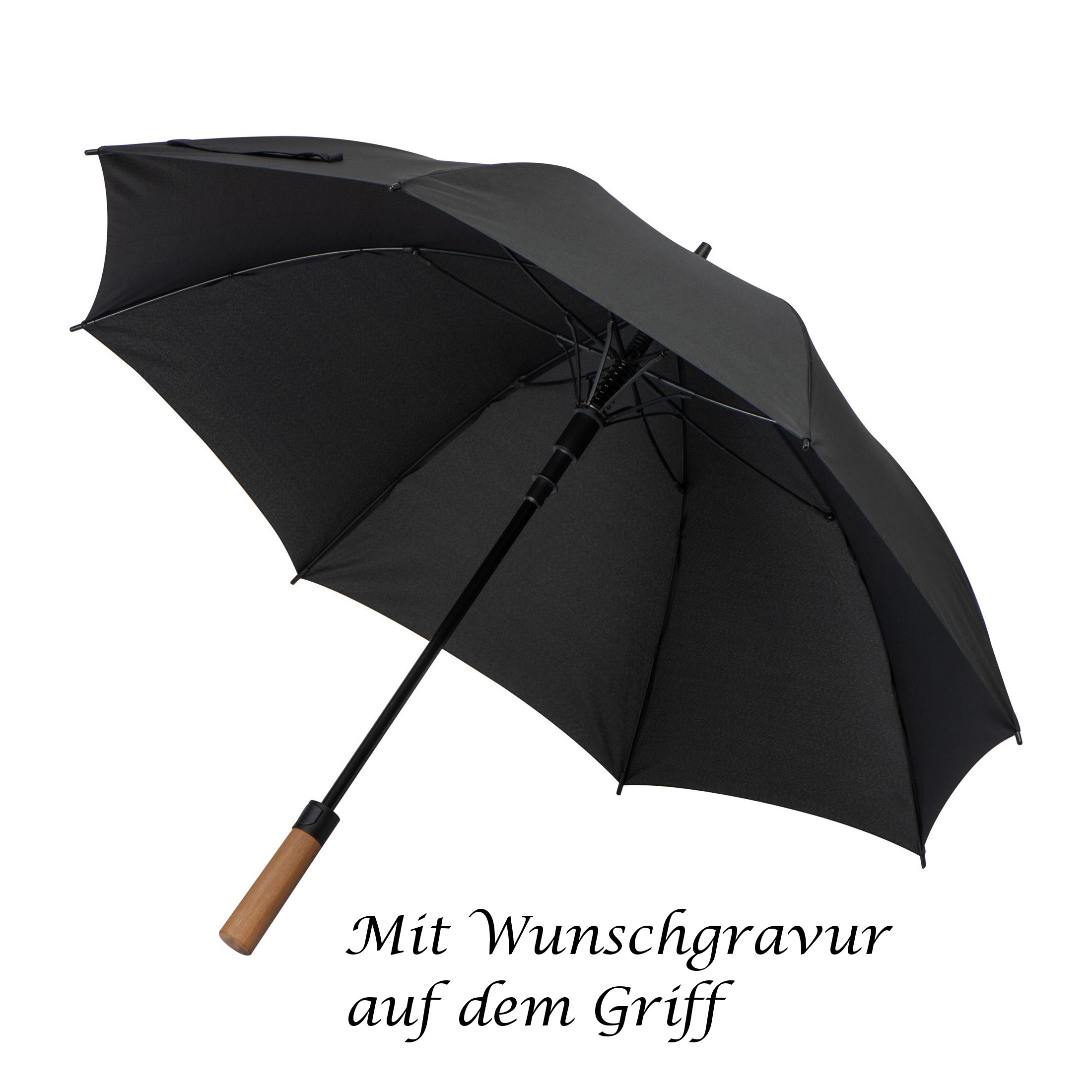 MoLu Regenschirm Saint Barth mit Gravur / Griff aus Akazienholz / Farbe schwarz
