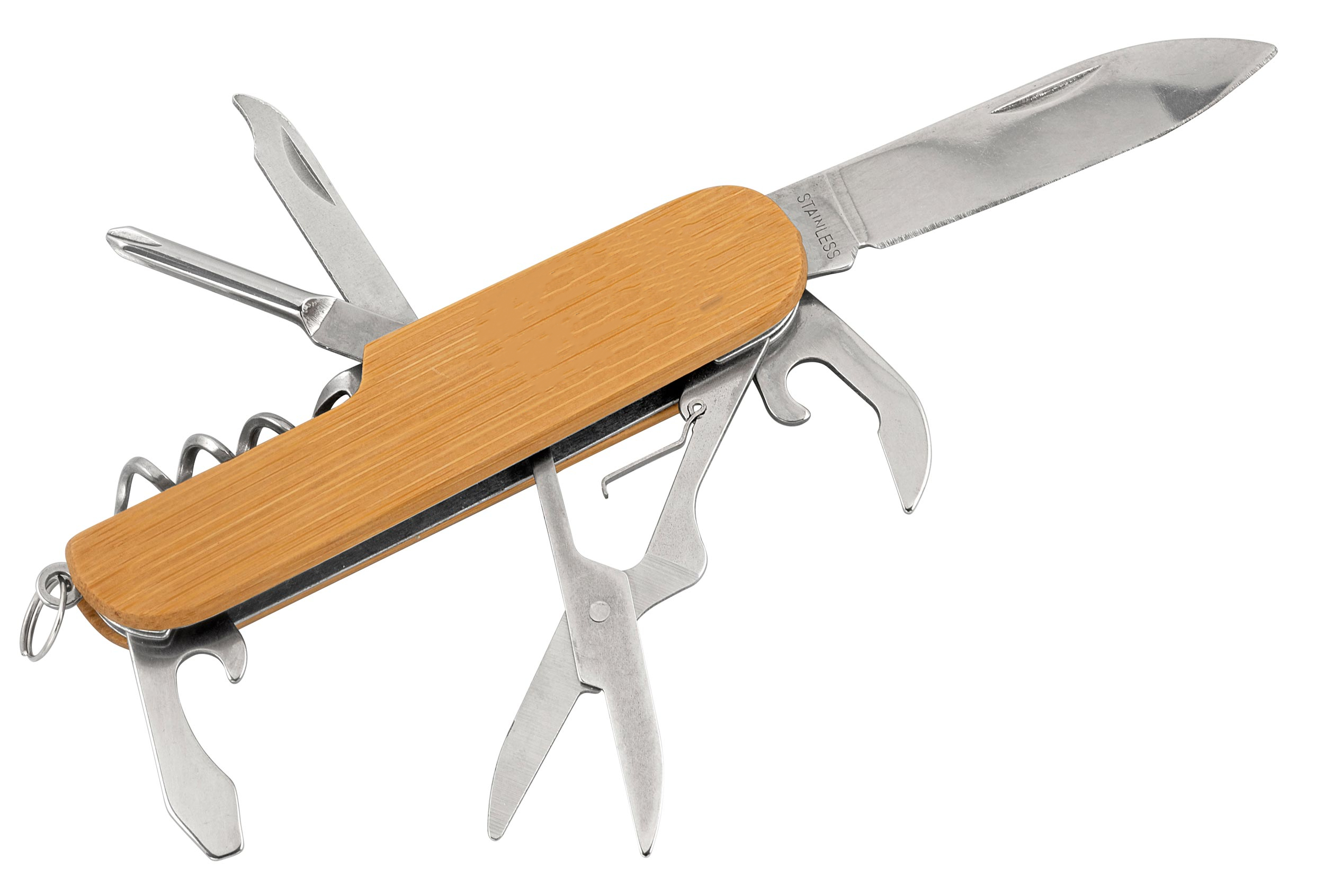 Multifunktions-Taschenmesser / mit Bambusholzgriff und 7 Funktionen