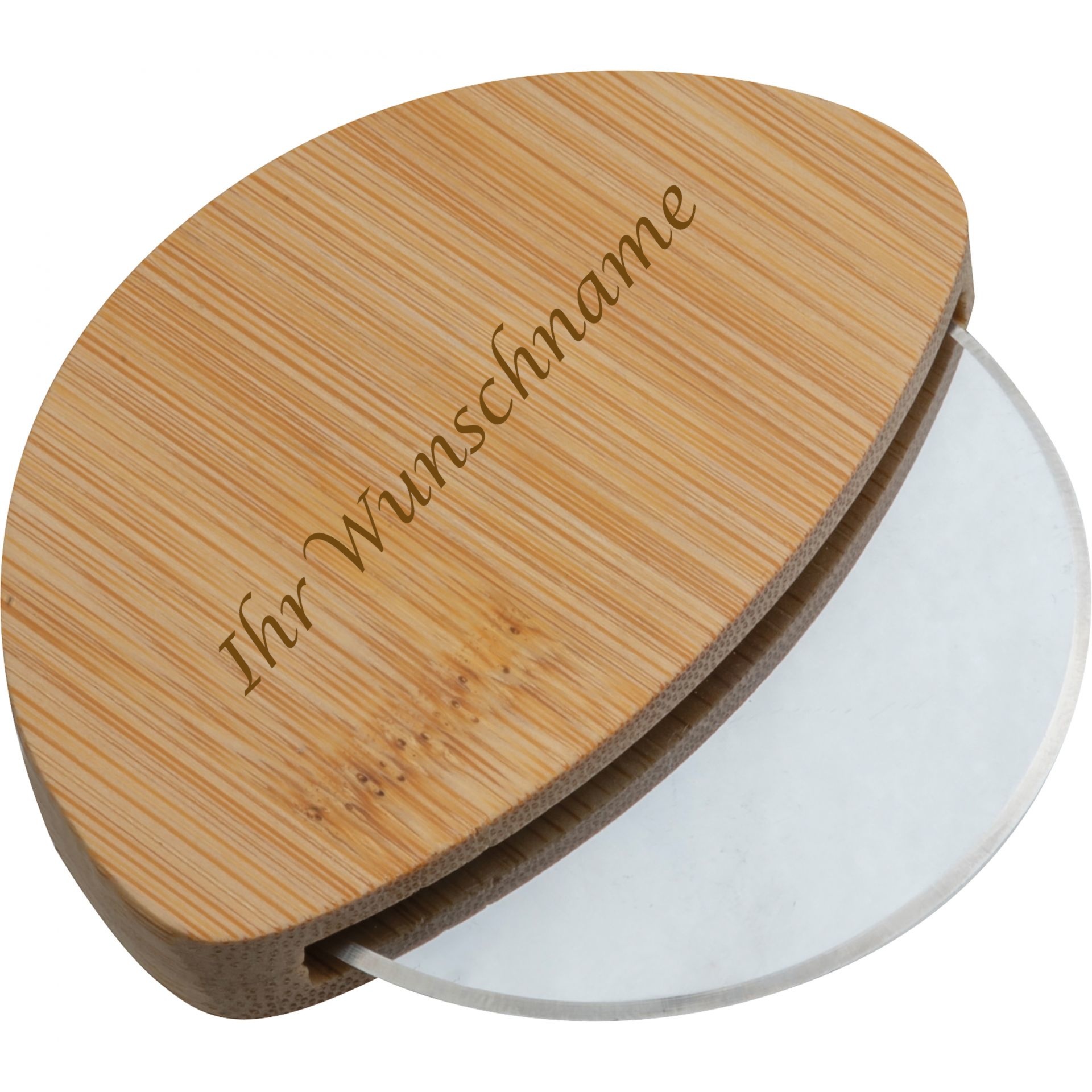 Produktinformationen "Pizzaschneider aus Bambus mit Gravur"