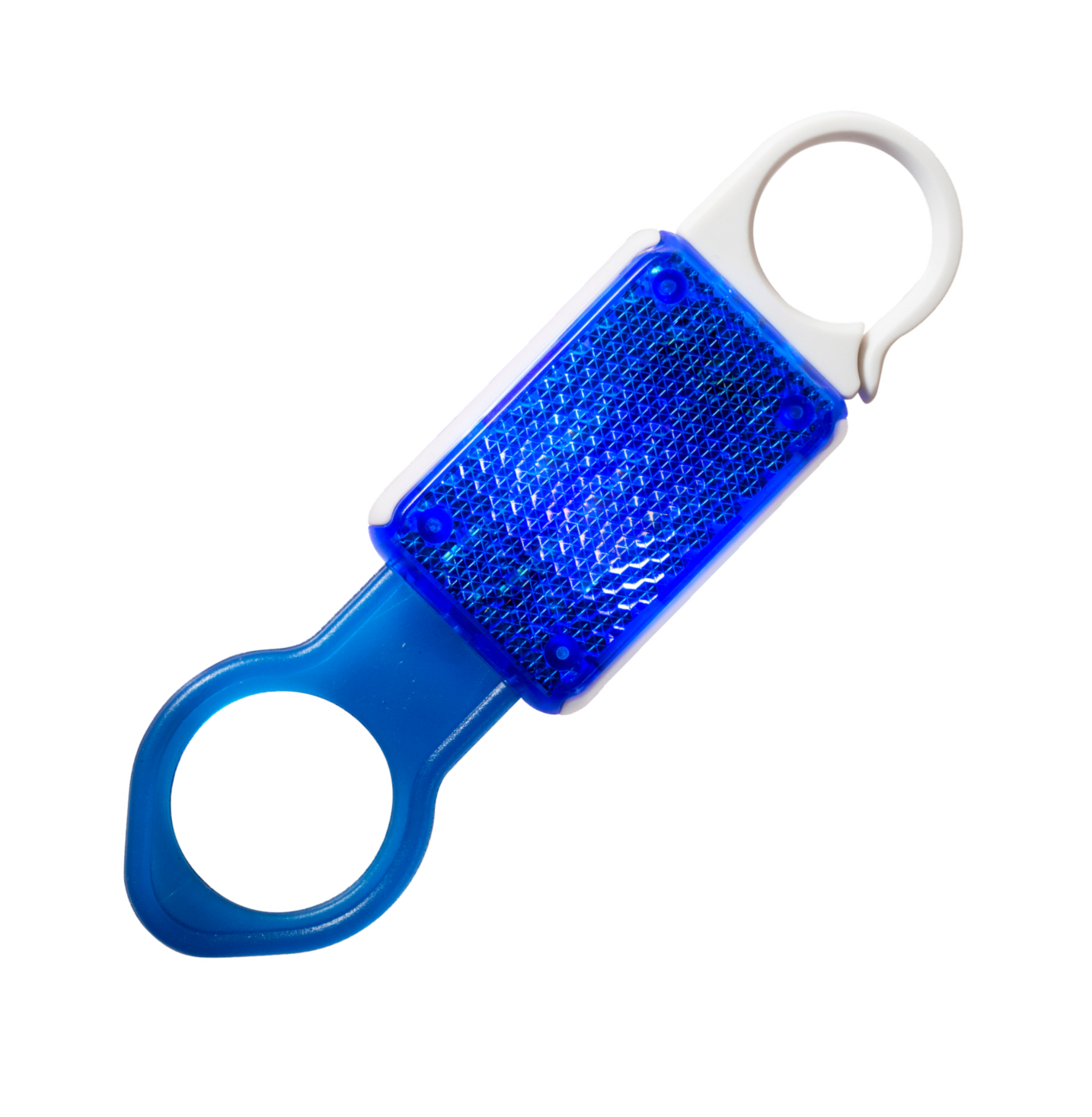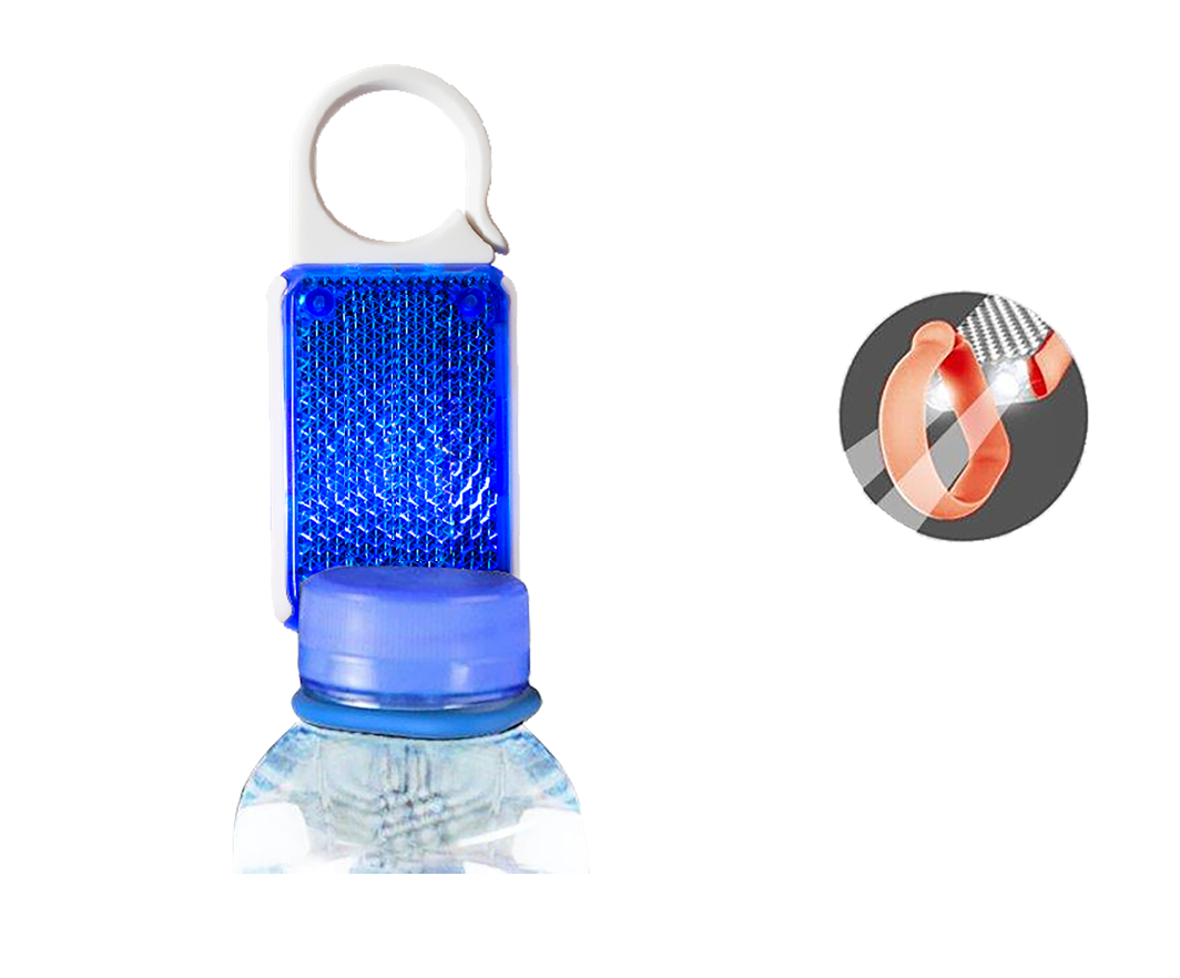 Reflektierender Flaschenhalter mit LED-Leuchte und Karabinerhaken / Farbe: blau