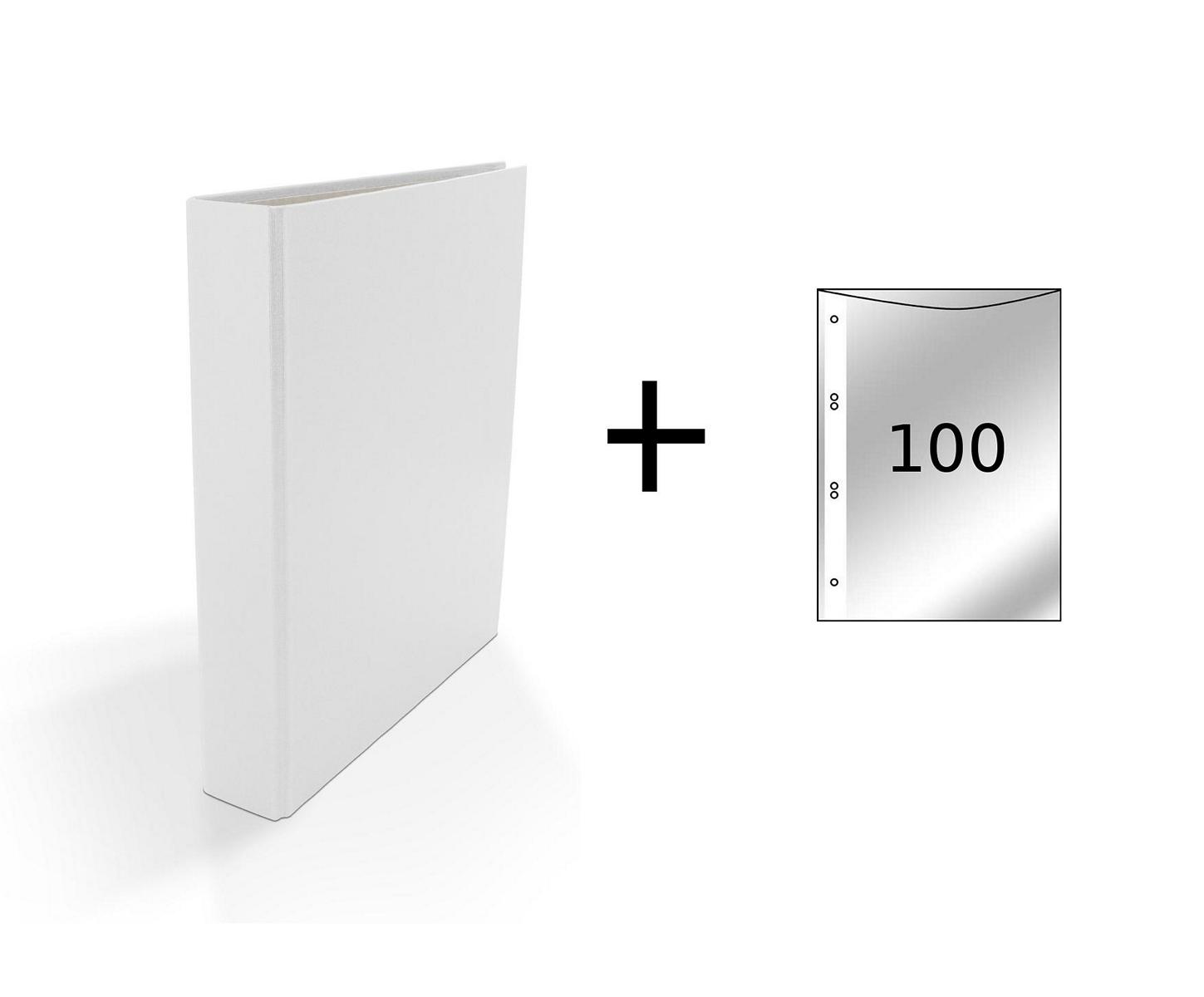 Ringbuch / DIN A5 / 2-Ring Ordner / Farbe: weiß + 100 Prospekthüllen