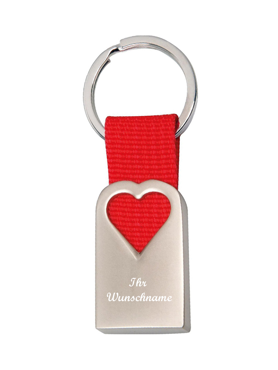 Schlüsselanhänger "Herz" mit Namensgravur - mit trendigem Nylonband