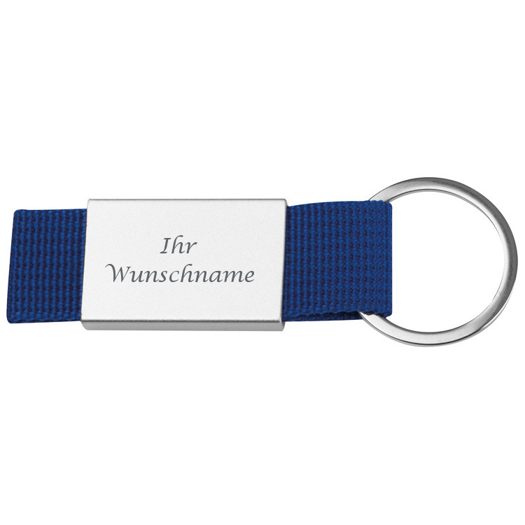 Schlüsselanhänger mit Gravur / mit blauen Stoffbändchen